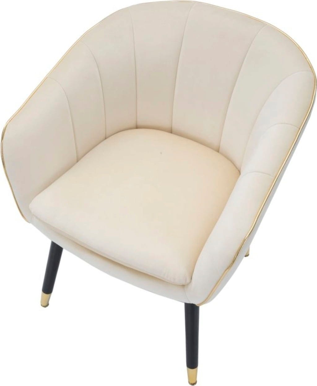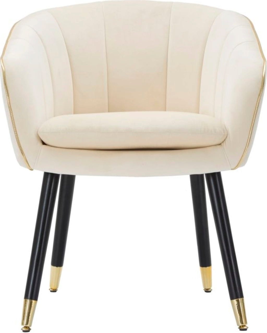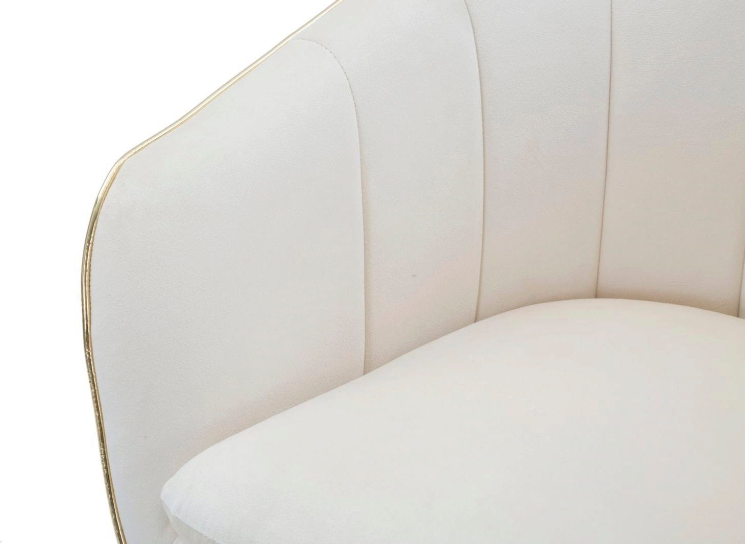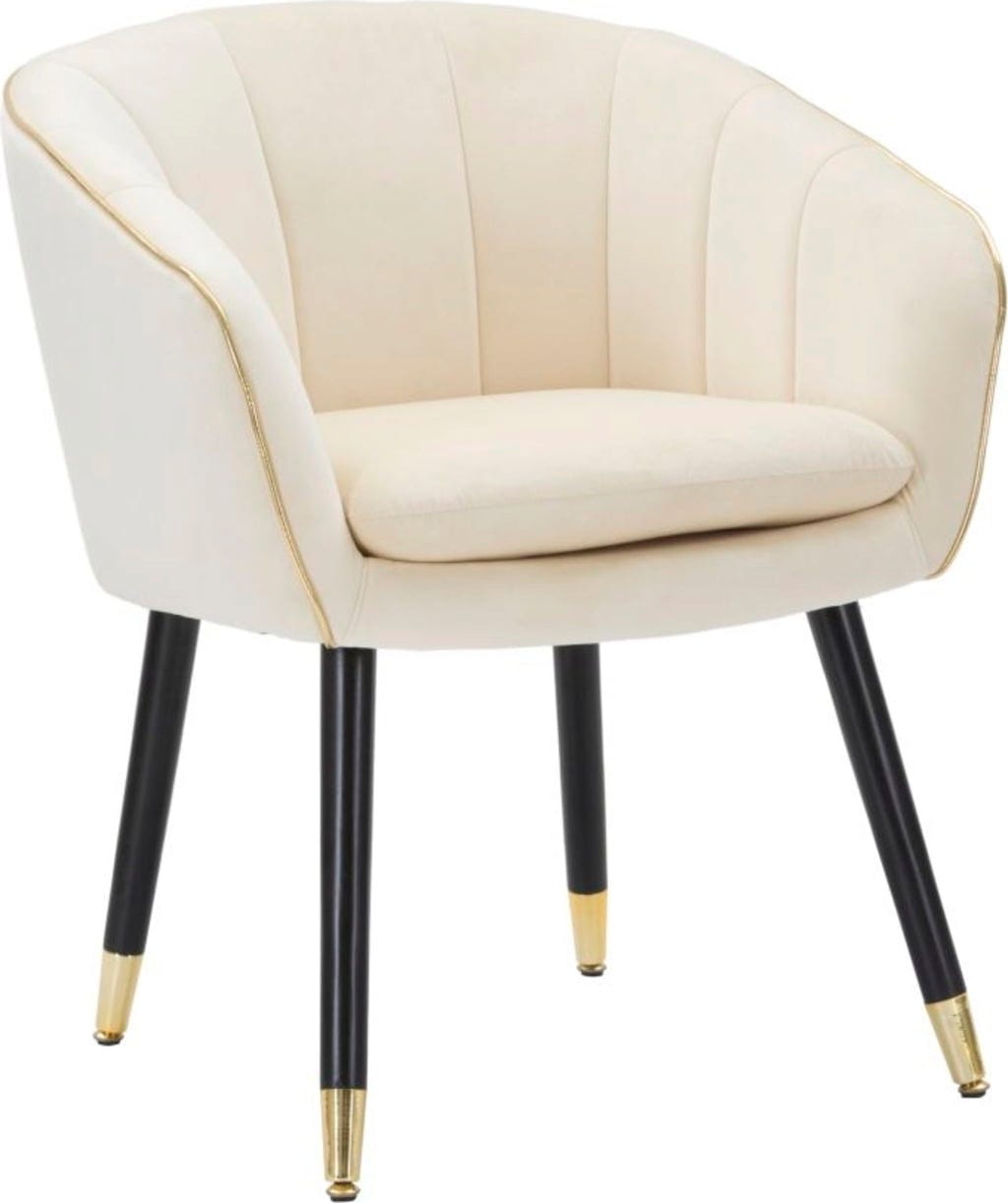 Nadaj swojemu wnętrzu odrobinę klasy i relaksującego komfortu dzięki temu eleganckiemu fotelowi! Został on wykończony miękkim, tapicerowanym obiciem z tkaniny w stylowym, kremowym odcieniu. Elegancką formę podkreśla błyszcząca, złota lamówka, która stanowi luksusowy akcent.