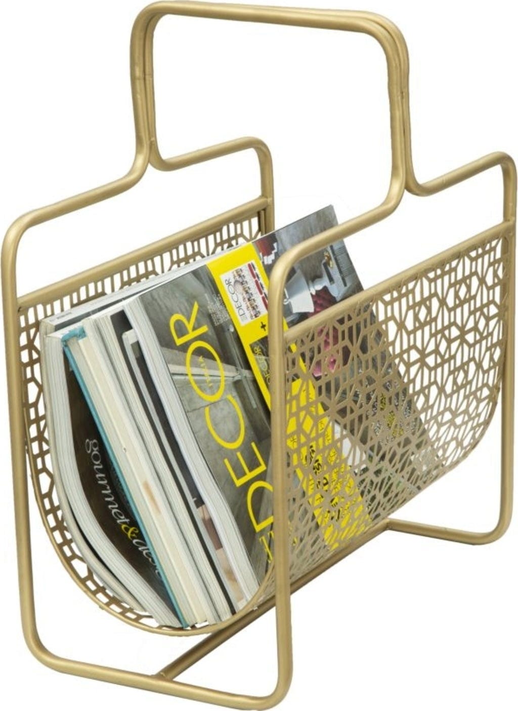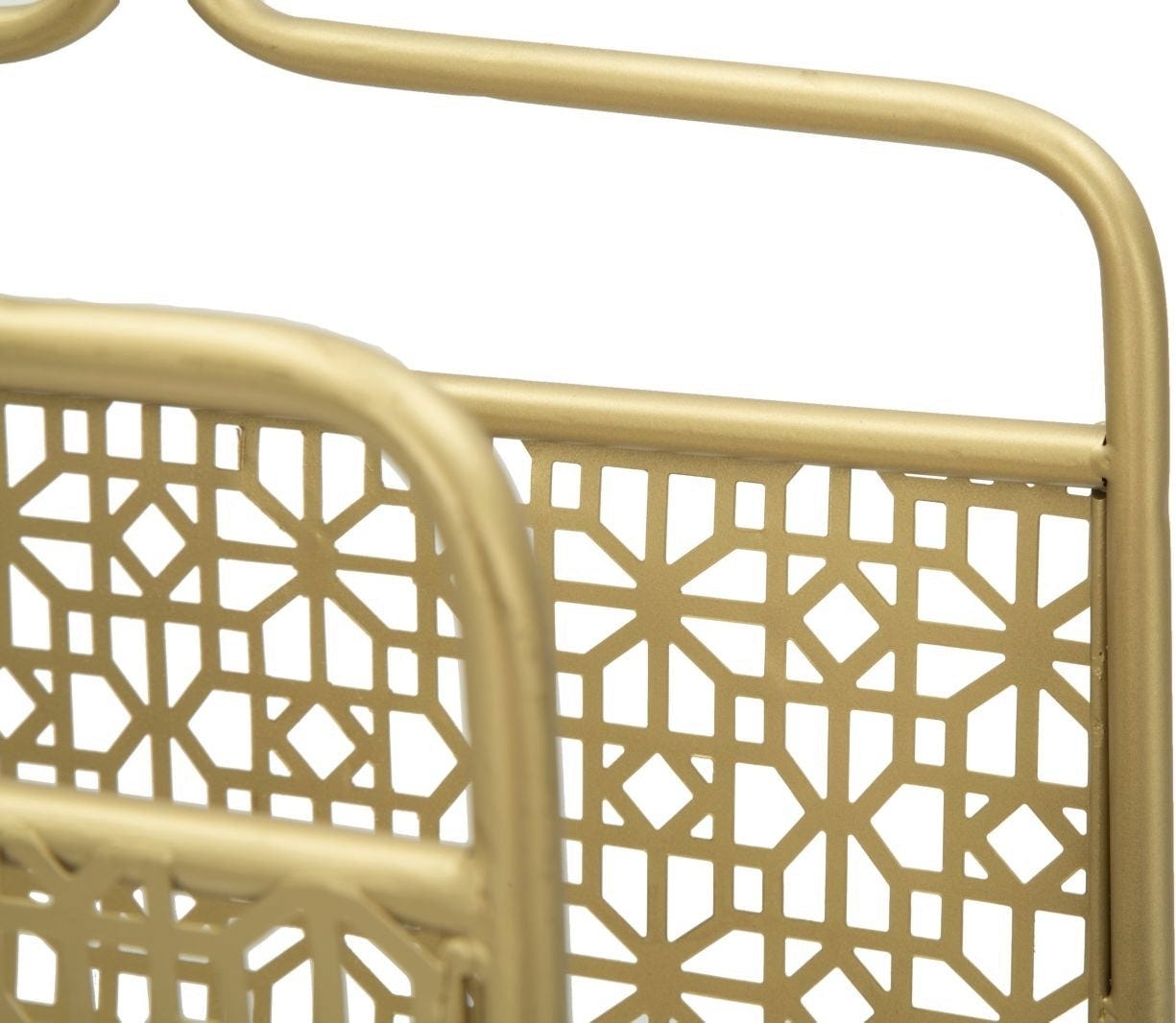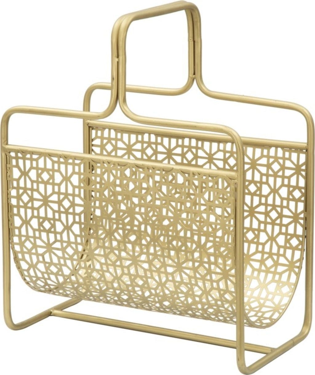 Design zachwyca kunsztownym, geometrycznym wzorem kratki, który nawiązuje do klasycznych elementów art déco i nadaje przedmiotowi lekką przejrzystość. Dzięki zintegrowanemu uchwytowi gazetnik można bez trudu przenieść tam, gdzie jest akurat potrzebny. Czy to obok sofy, czy w gabinecie – gazetnik Glam stylowo wyeksponuje Twoje czasopisma i natychmiast nada każdemu pomieszczeniu odrobinę blasku!