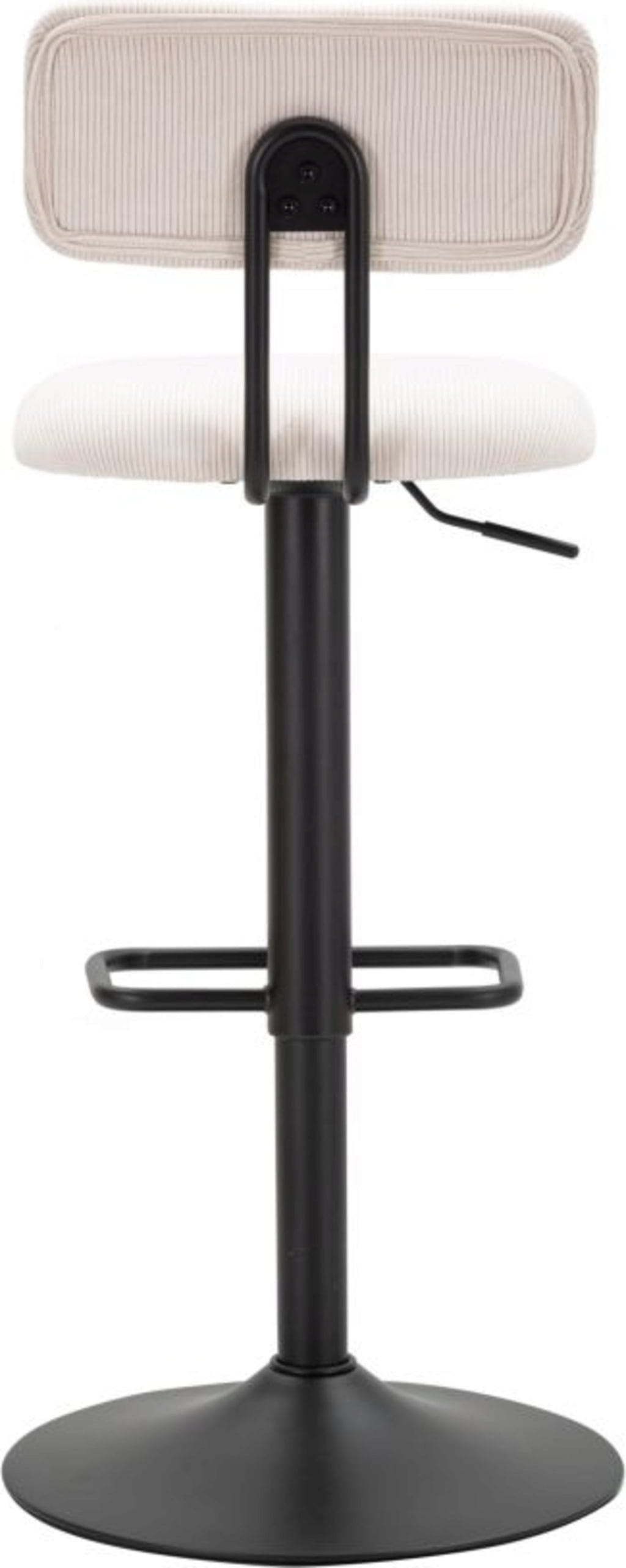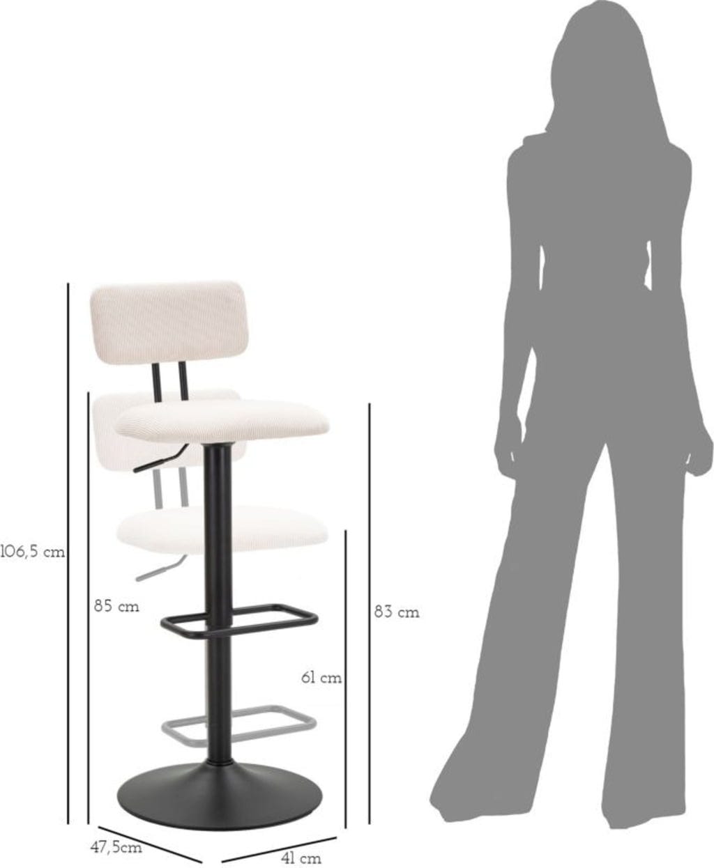 Teksturowane obicie z tkaniny w delikatnej bieli nadaje wnętrzu świeży, zapraszający charakter, a solidny czarny metalowy stelaż zapewnia stabilność i trwałość. Dzięki zintegrowanej regulacji wysokości i praktycznemu podnóżkowi hokery idealnie dopasowują się do każdej wysokości blatu. Czy to na przytulne śniadanie, czy na wieczornego drinka – ten zestaw łączy nostalgiczny urok z nowoczesnym komfortem!
