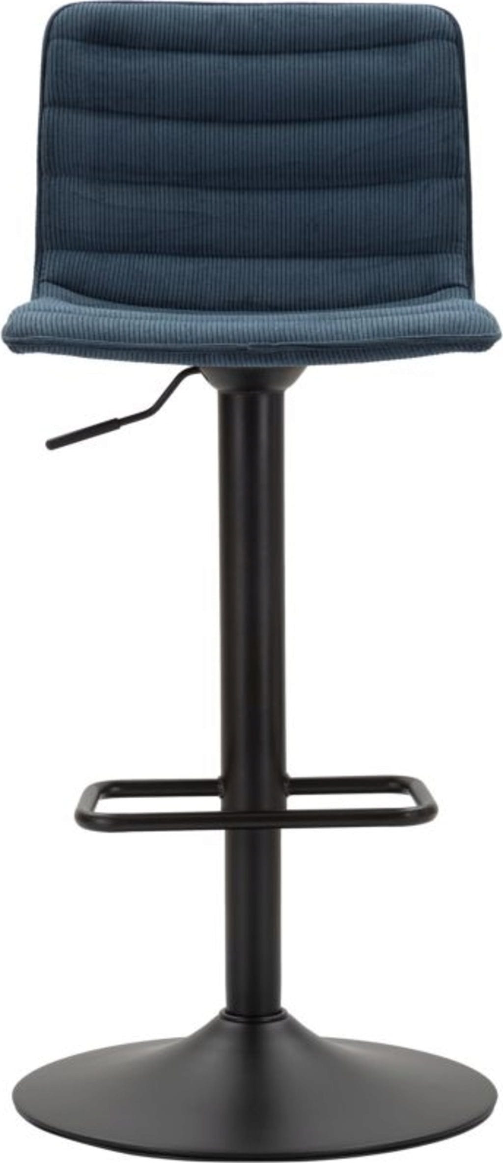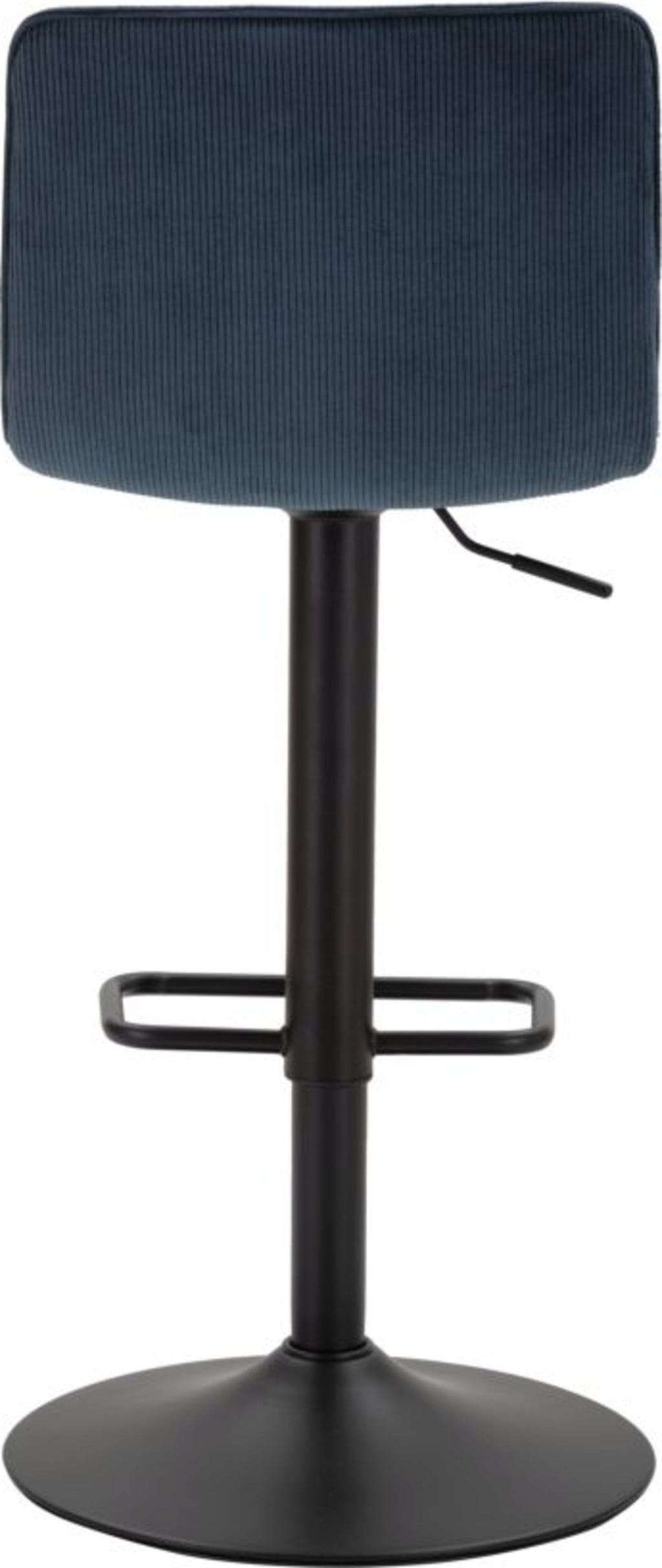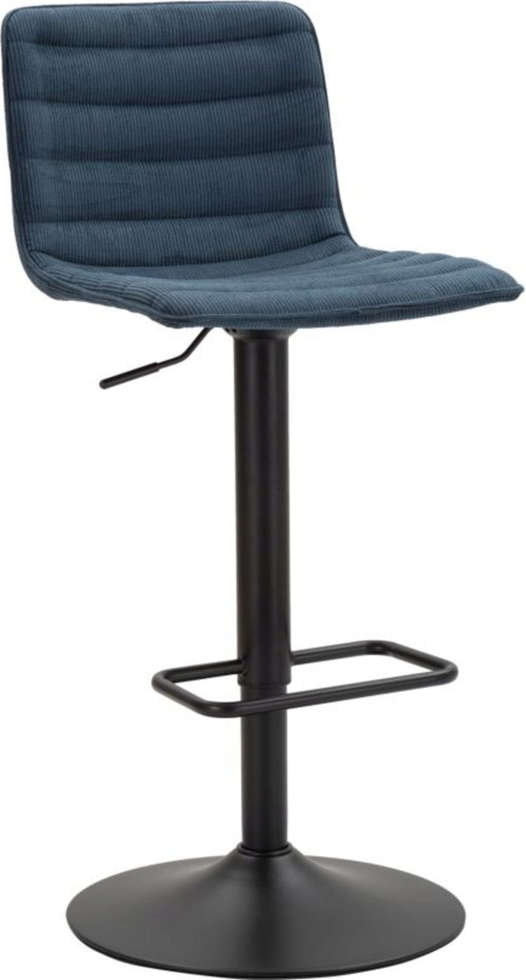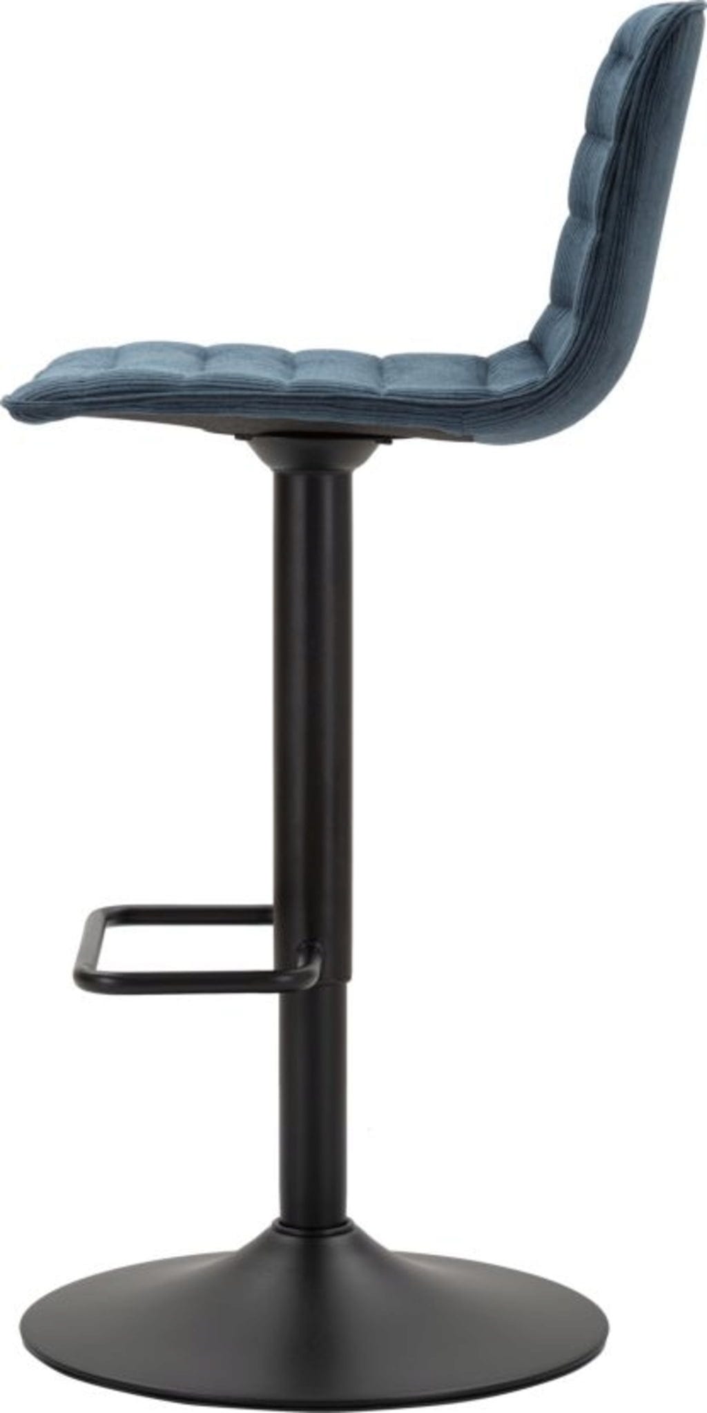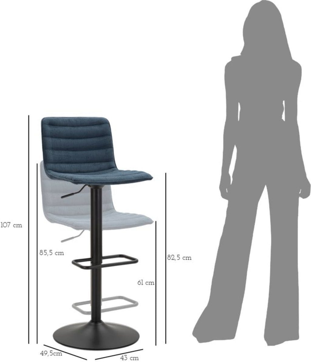 Obicie ze strukturalnej tkaniny w eleganckim granatowym kolorze nadaje wnętrzu świeży, zapraszający charakter, a solidna czarna metalowa podstawa zapewnia stabilność i trwałość. Dzięki zintegrowanej regulacji wysokości i praktycznemu podnóżkowi hokery idealnie dopasowują się do każdej wysokości blatu. Czy to na przytulne śniadanie, czy na wieczornego drinka – ten zestaw łączy nostalgiczny urok z nowoczesnym komfortem!