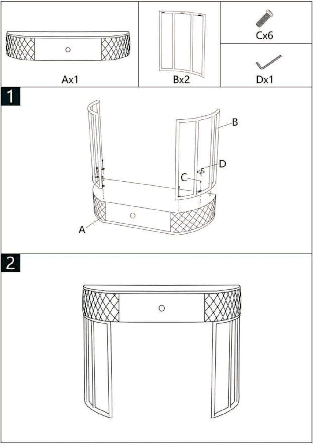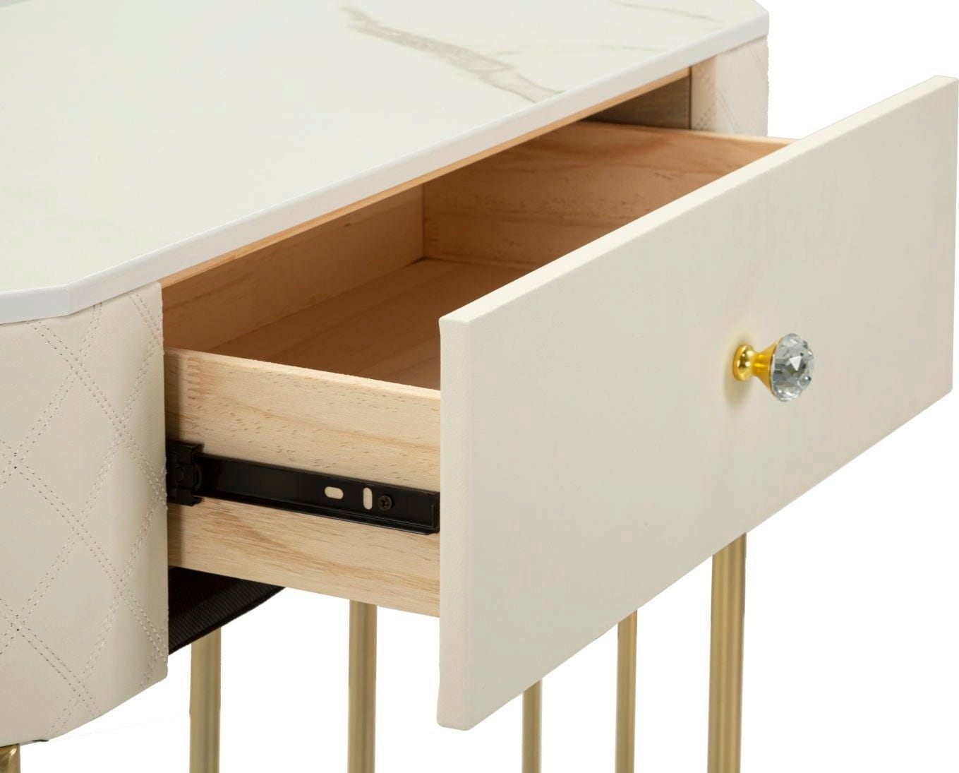 Środkowa szuflada, ozdobiona kształtną, błyszczącą gałką, oferuje dyskretne miejsce do przechowywania kluczy lub drobiazgów. Konsola opiera się na filigranowym, złotym metalowym stelażu, który stylowo podkreśla nowoczesny wygląd. Ten elegancki mebel jest idealny do wyeksponowania dekoracji i nadania każdemu pomieszczeniu ekskluzywnego charakteru.