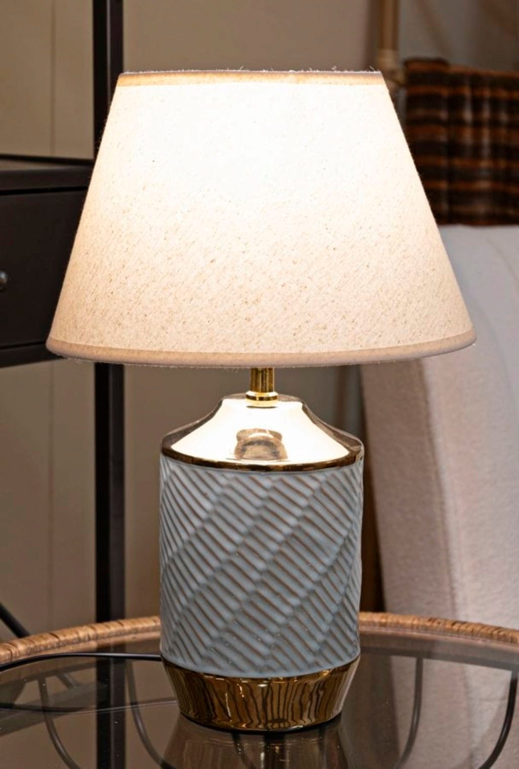 Klasyczny, biały abażur z tkaniny zapewnia łagodnie przefiltrowane, nieoślepiające światło. Ta lampa to coś więcej niż tylko źródło światła; to stylowy akcent kolorystyczny, który umiejętnie odzwierciedla Twój wyrafinowany gust, niezależnie od tego, czy zostanie umieszczona w salonie, czy w sypialni.
