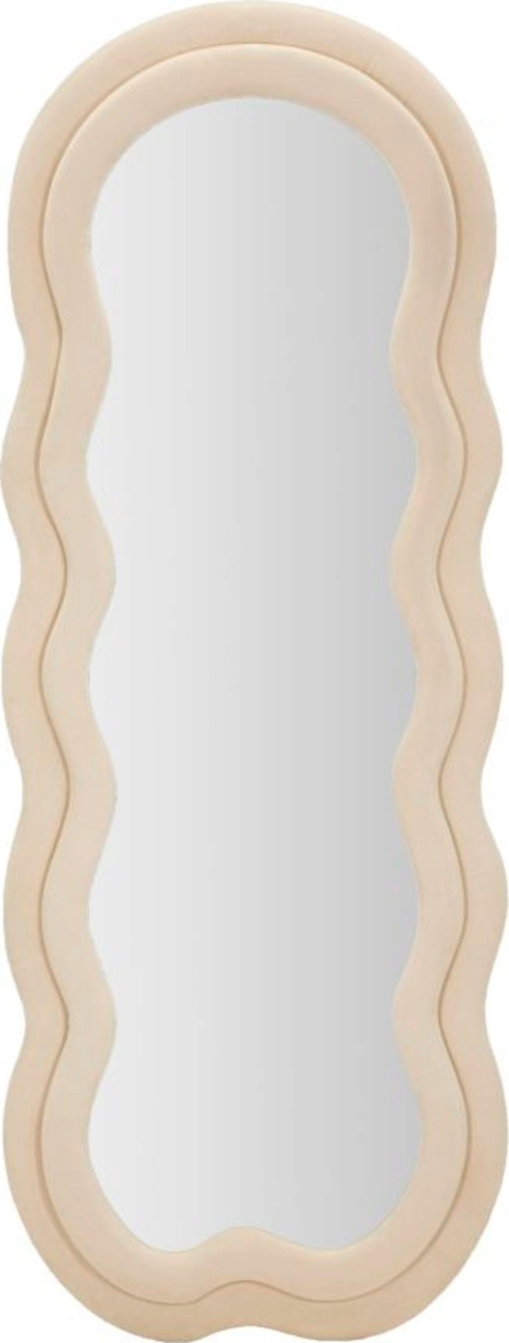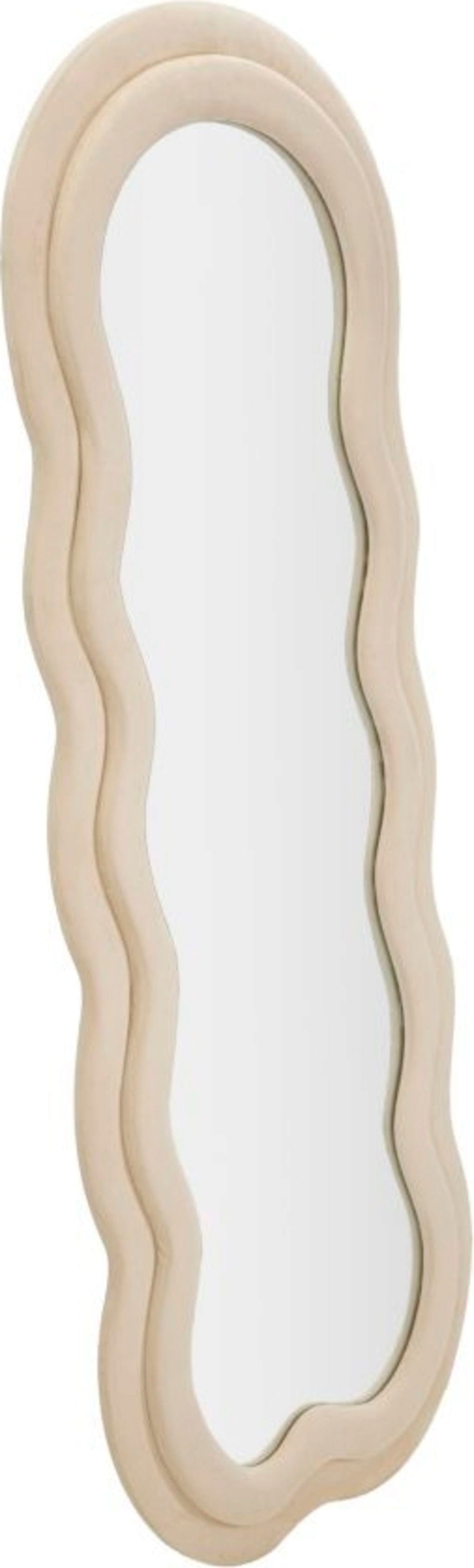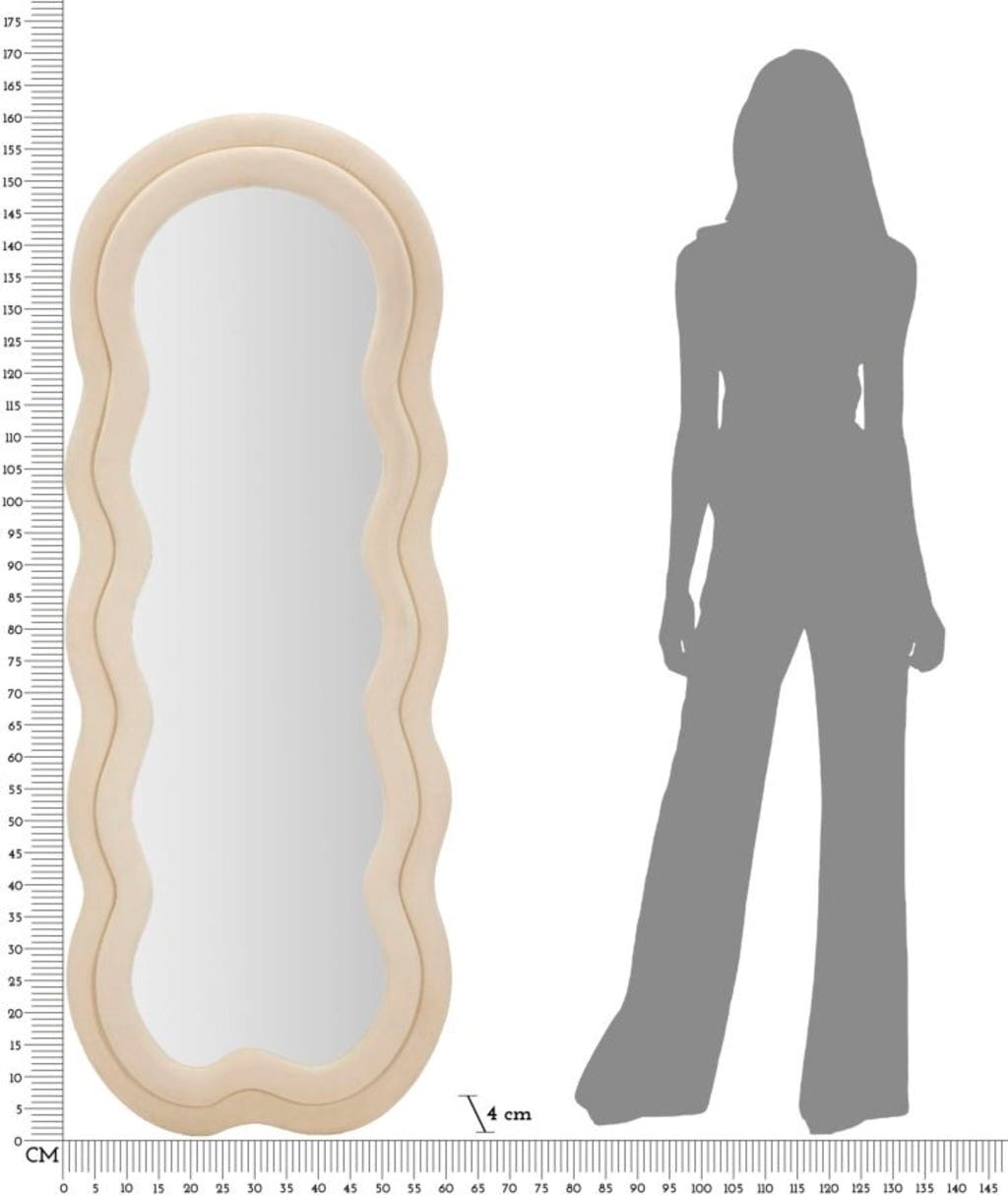 Dzięki lustru ściennemu Miki marki Mauro Ferretti zyskasz na swojej ścianie wyrazisty element dekoracyjny, który idealnie łączy przytulność z nowoczesnym designem. Niezwykły, zakrzywiony kształt ramy przełamuje klasyczne linie i wprowadza żywą, organiczną dynamikę do każdego pomieszczenia. Stabilna drewniana rama jest obita wysokiej jakości tkaniną w szlachetnym kremowym kolorze, która dzięki swojej aksamitnej strukturze zapewnia wyjątkowo miękki i zachęcający wygląd.