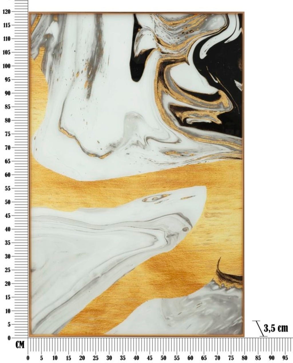 Oprawione w prostą, złotą metalową ramę, dzieło sztuki jest wyjątkowo wysokiej jakości i nowoczesne. Dzięki błyszczącej szklanej powierzchni subtelne tekstury i złote detale są doskonale wyeksponowane, co sprawia, że Ghostly to idealny element przyciągający wzrok w wyrafinowanych wnętrzach.