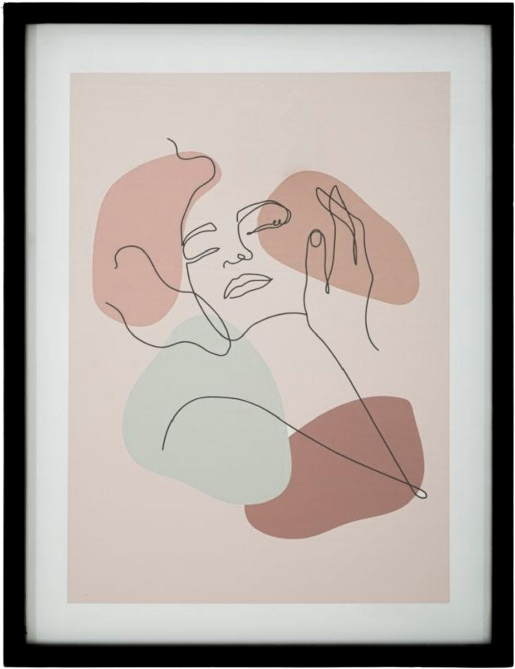 Stwórz oazę spokoju na swojej ścianie dzięki temu obrazowi w ramie od Mauro Ferretti. Motyw przedstawia kobiecy portret w subtelnym stylu minimal art, łącząc płynne linie z delikatnymi plamami barwnymi w kolorach ziemi i akcentem pastelowej zieleni. Dzięki prostej, czarnej ramie dzieło zyskuje elegancką oprawę i bez trudu wkomponuje się w różne style wnętrzarskie.