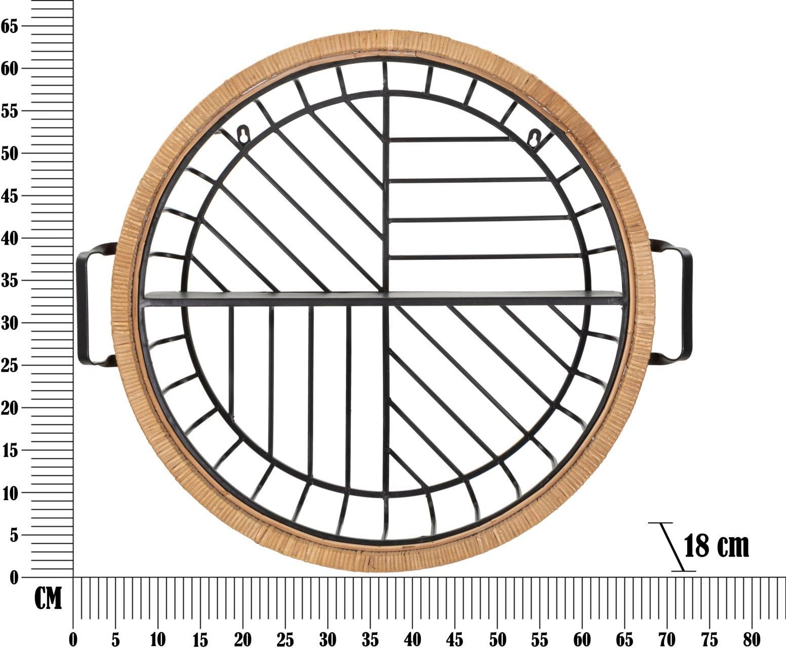 Postaw na wyrazisty akcent dekoracyjny na swojej ścianie dzięki półce ściennej Cebu od Mauro Ferretti. Ta okrągła półka z czarnego metalu zachwyca kunsztownie plecioną ramą z rattanu, która nadaje przedmiotowi naturalne ciepło.