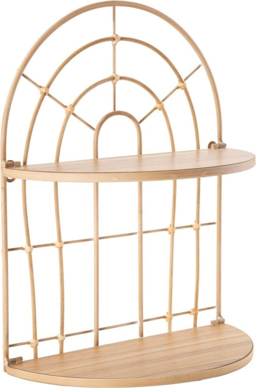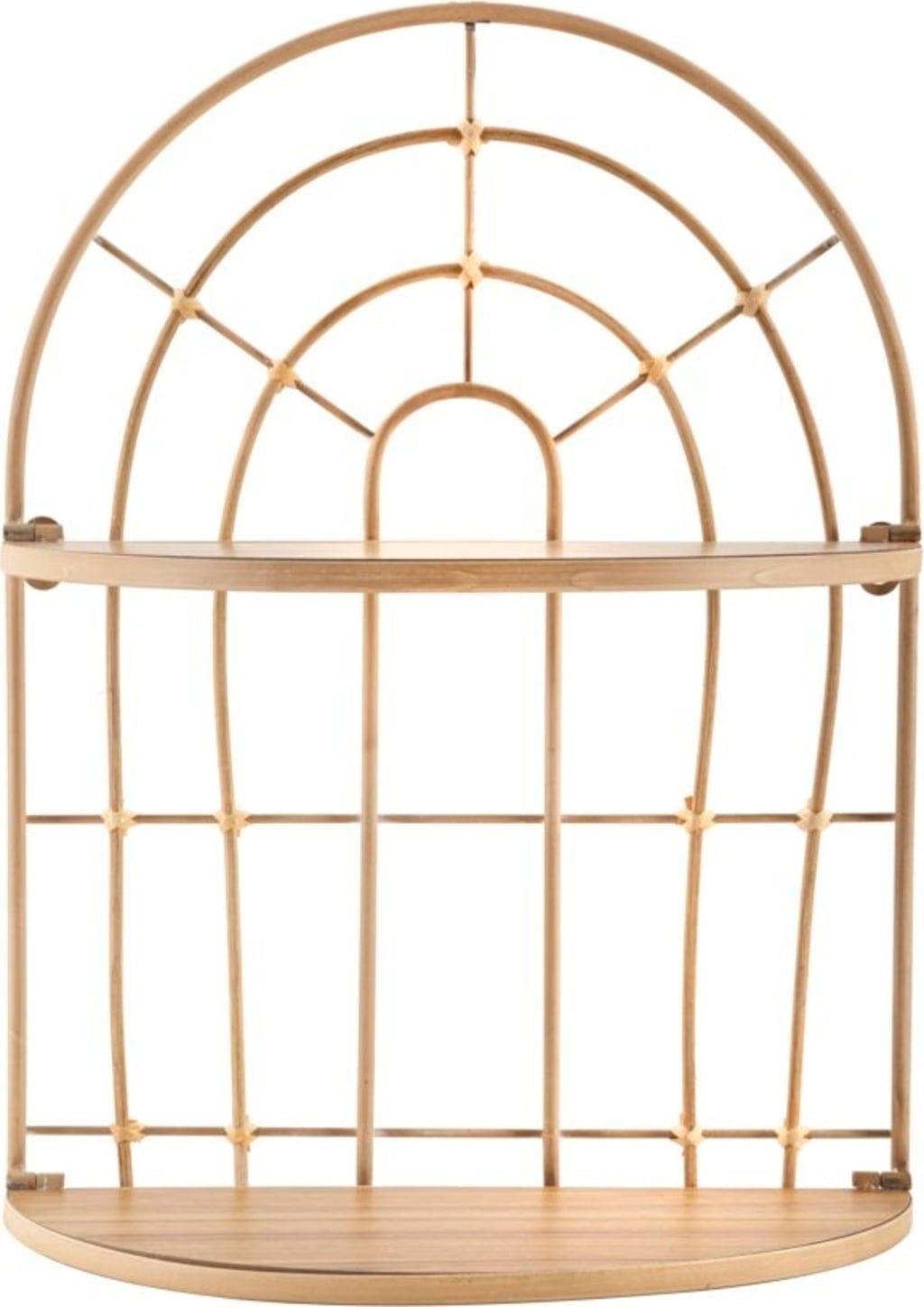 Delikatnie wygięte łuki i ciepła estetyka rattanu tworzą spokojną atmosferę, a dwie półokrągłe powierzchnie zapewniają dokładnie tyle miejsca, ile potrzebujesz na swoje ulubione dekoracje, małe rośliny lub osobiste pamiątki.