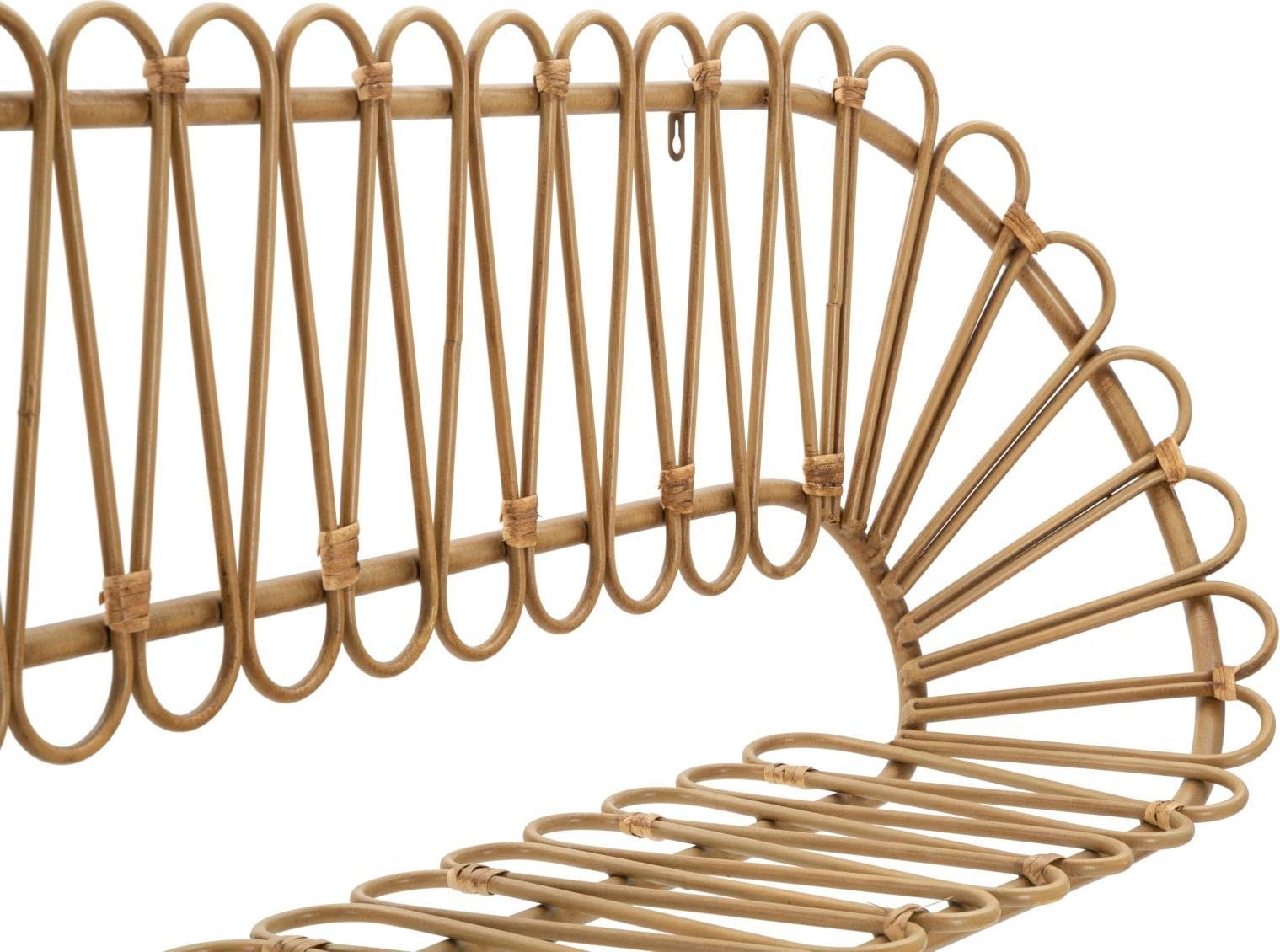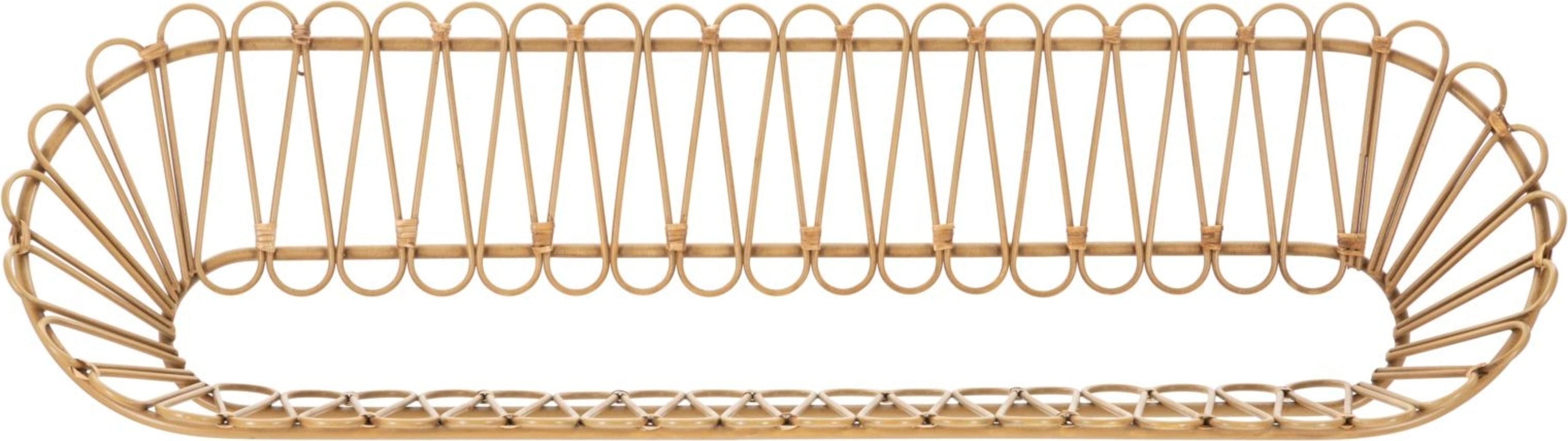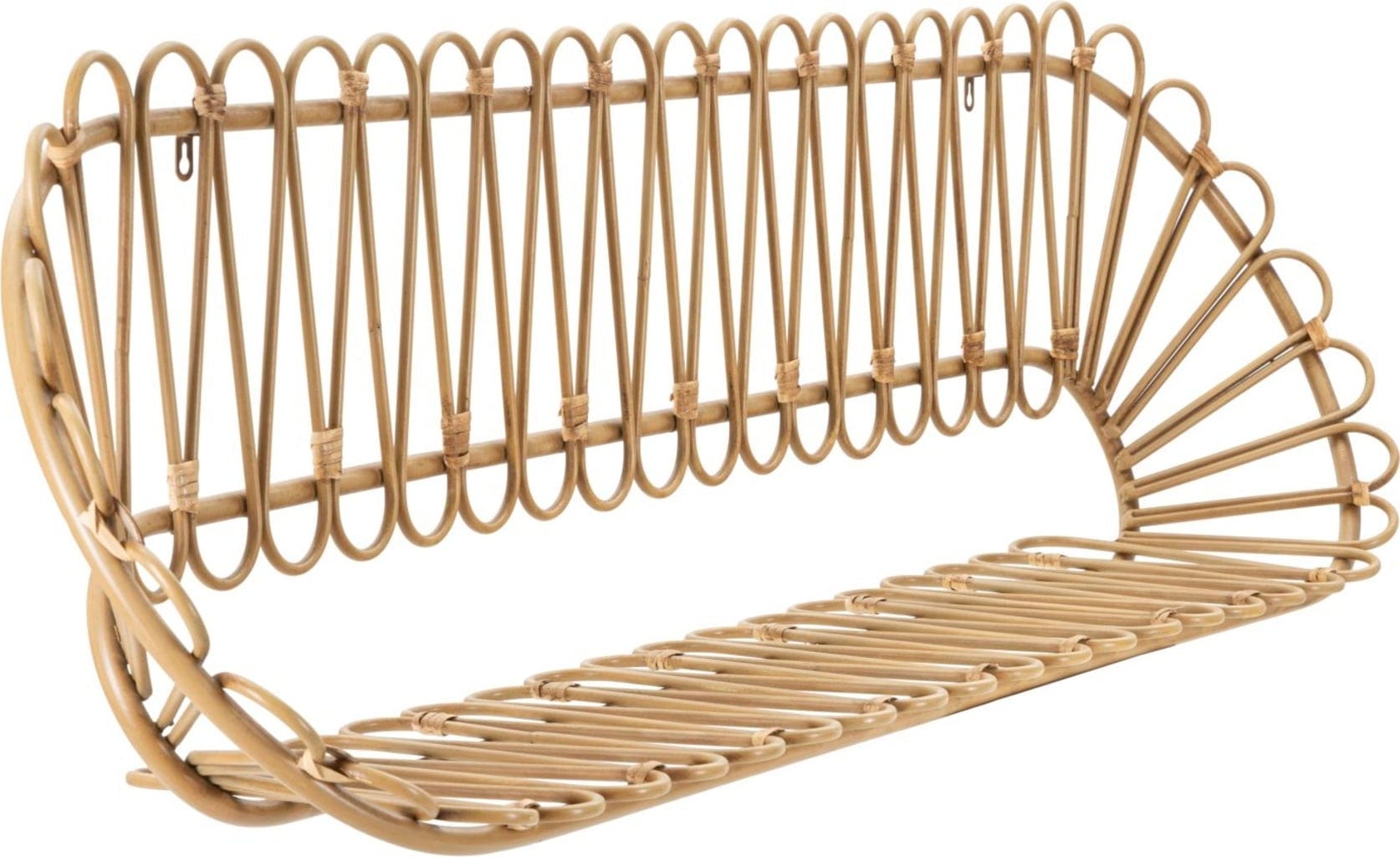 Szczególnym wyróżnikiem jest owalny, wydłużony kształt otoczony licznymi filigranowymi elementami w formie pętli. Ta kunsztowna struktura nawiązuje do tradycyjnej sztuki plecionkarskiej i nadaje półce rzeźbiarski charakter. Dzięki połączeniu wytrzymałego metalu i ciepłych odcieni rattanu, półka Panama oferuje nie tylko praktyczną powierzchnię do przechowywania, ale jest również dekoracyjnym elementem typu statement, który harmonijnie wpisuje się w różne style wnętrzarskie.