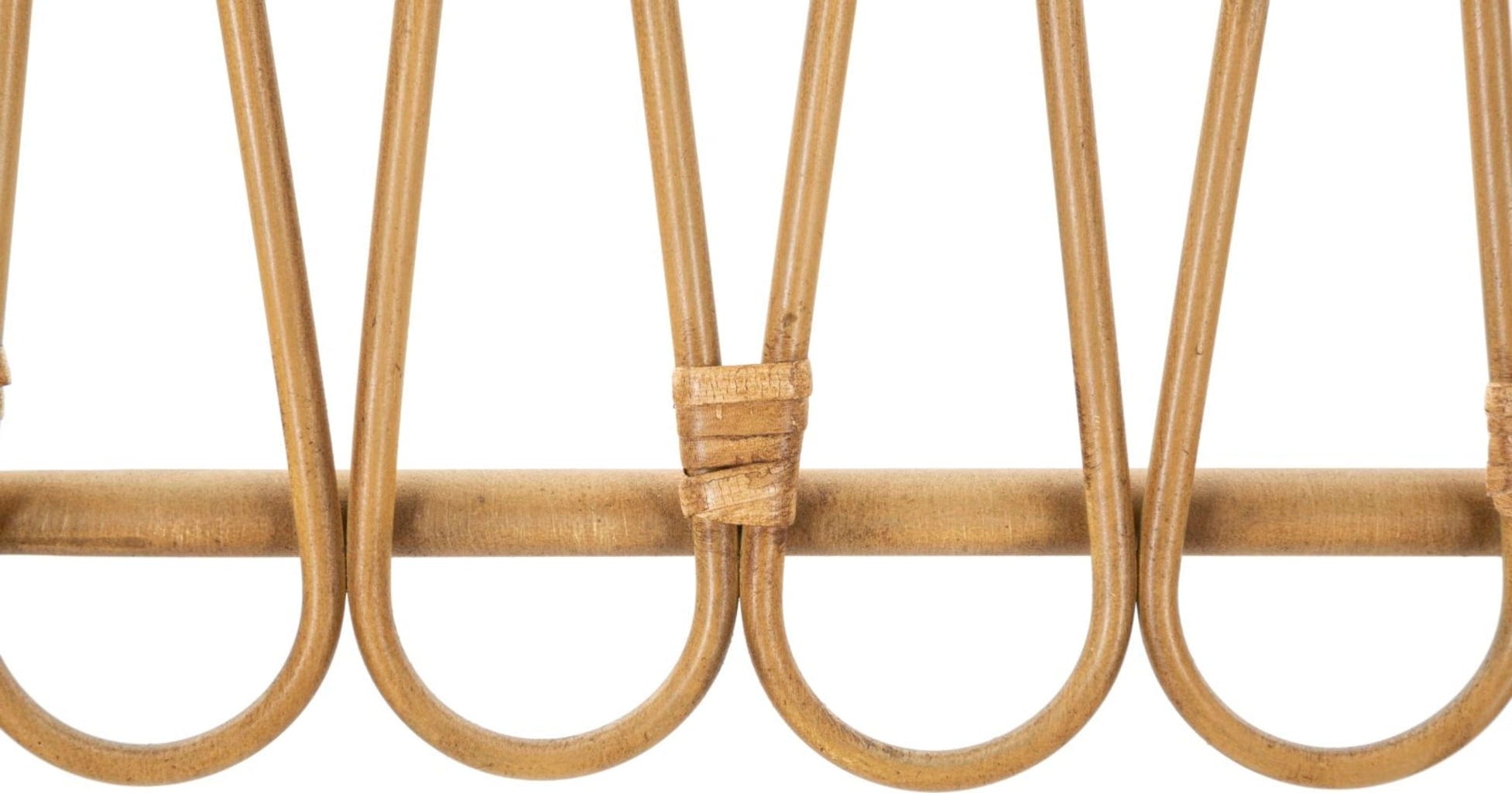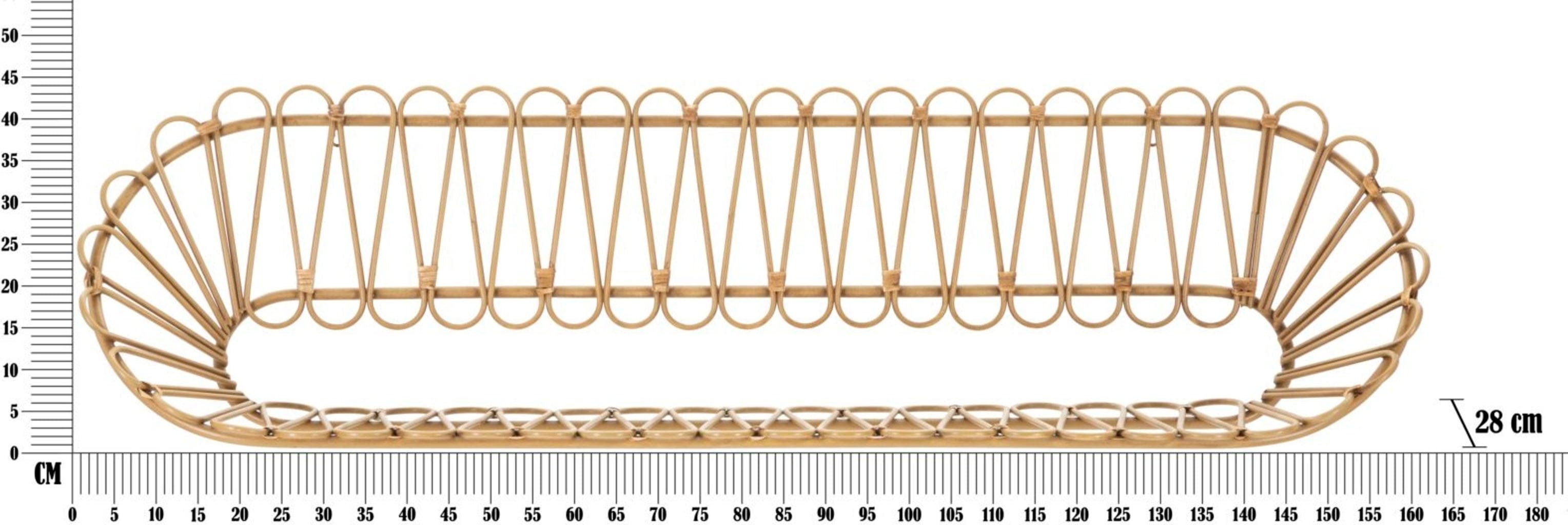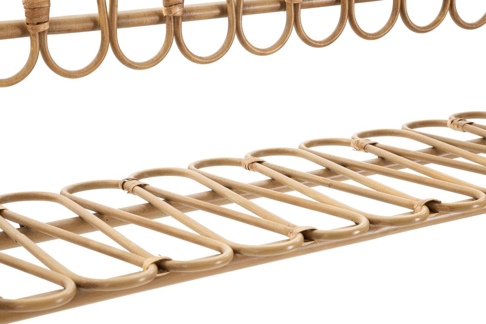 Szczególnym wyróżnikiem jest owalny, wydłużony kształt otoczony licznymi filigranowymi elementami w formie pętli. Ta kunsztowna struktura nawiązuje do tradycyjnej sztuki plecionkarskiej i nadaje półce rzeźbiarski charakter. Dzięki połączeniu wytrzymałego metalu i ciepłych odcieni rattanu, półka Panama oferuje nie tylko praktyczną powierzchnię do przechowywania, ale jest również dekoracyjnym elementem typu statement, który harmonijnie wpisuje się w różne style wnętrzarskie.