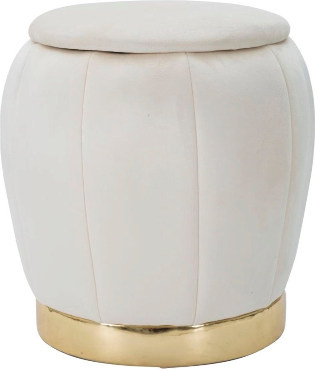 Dodaj odrobinę blasku do swojego salonu lub sypialni dzięki tej eleganckiej pufie, której design został zainspirowany luksusowymi garderobami wielkich gwiazd Hollywood! Jest ona tapicerowana miękkim, kremowym aksamitem, który nadaje jej luksusowy charakter.