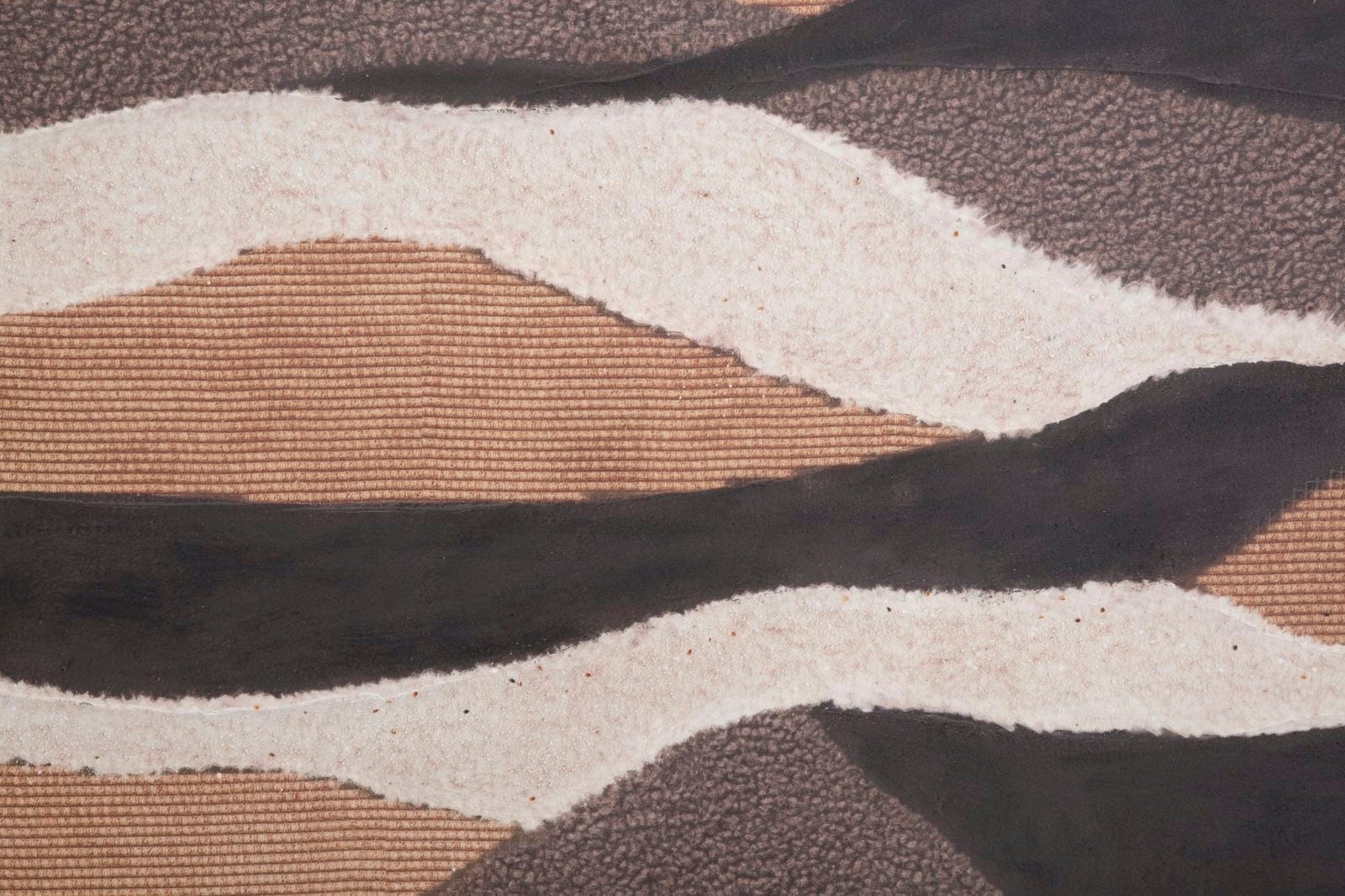Motyw przypomina łagodnie pofalowane wydmy pustynne, które ożywają dzięki różnorodnym strukturom: drobnoziarniste powierzchnie spotykają się z prążkowanymi teksturami i gładkimi przejściami kolorystycznymi w odcieniach beżu, brązu i antracytu. Te haptyczne kontrasty nadają obrazowi fascynującą głębię i czynią go unikatowym dziełem z charakterem. Naciągnięty na stabilną drewnianą ramę, harmonizuje z naturalnymi kolorami, idealnie pasując do każdego stylu wnętrza i tworząc ciepłe, zapraszające otoczenie.