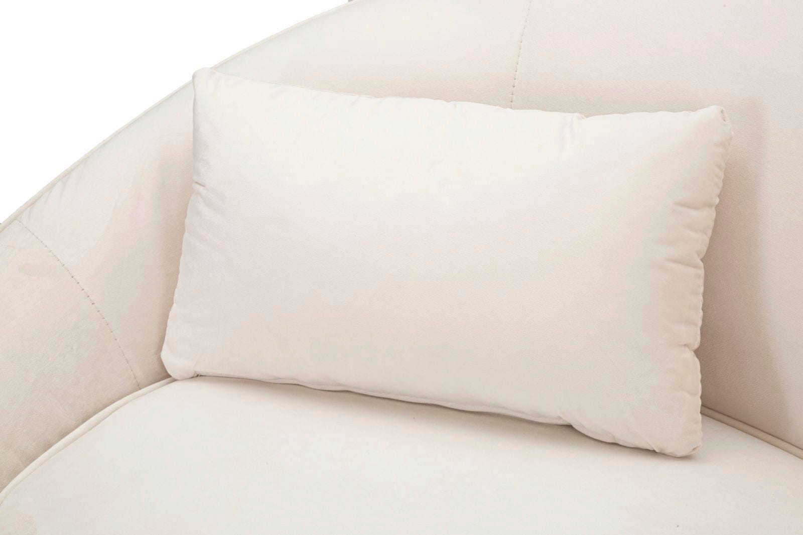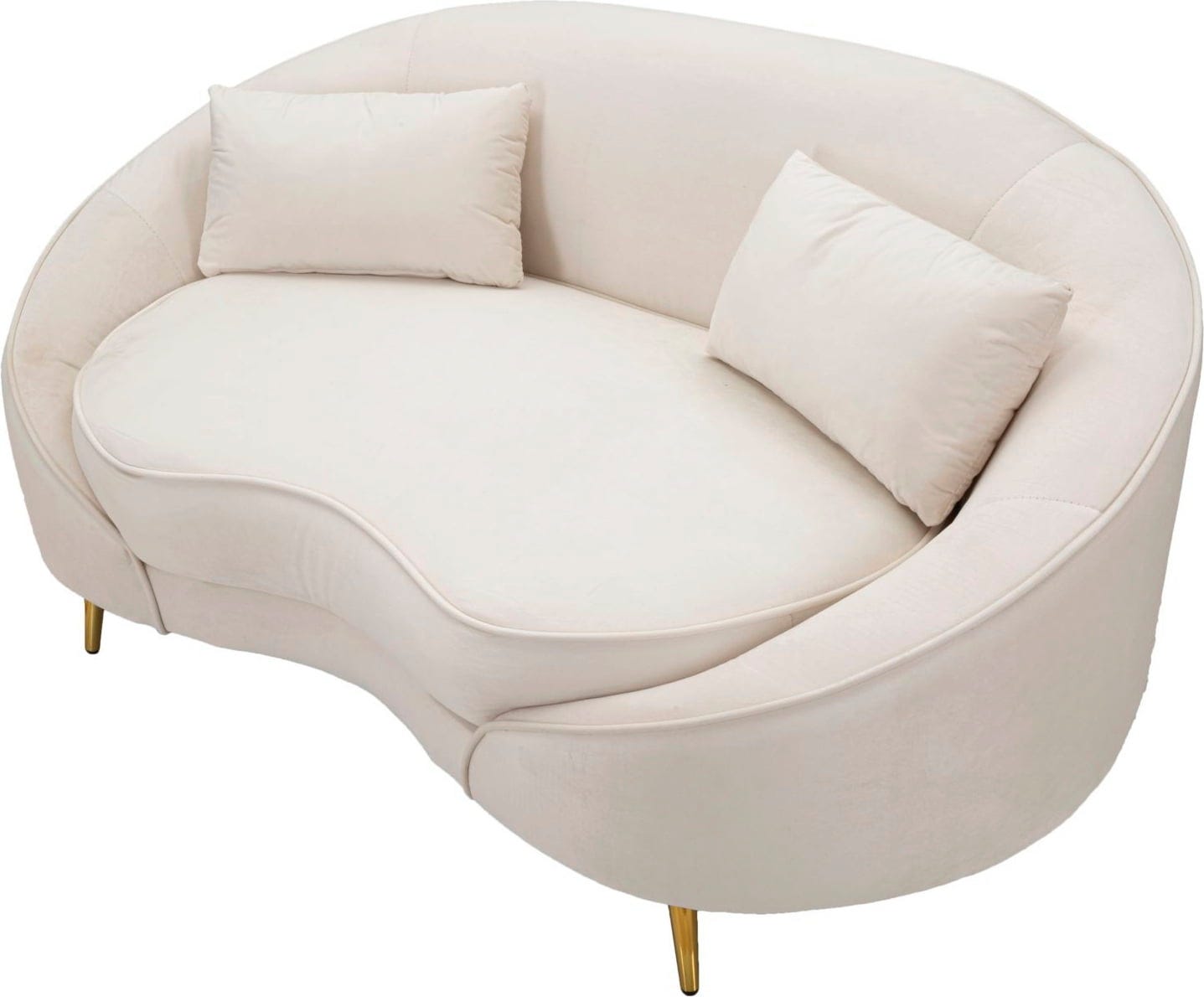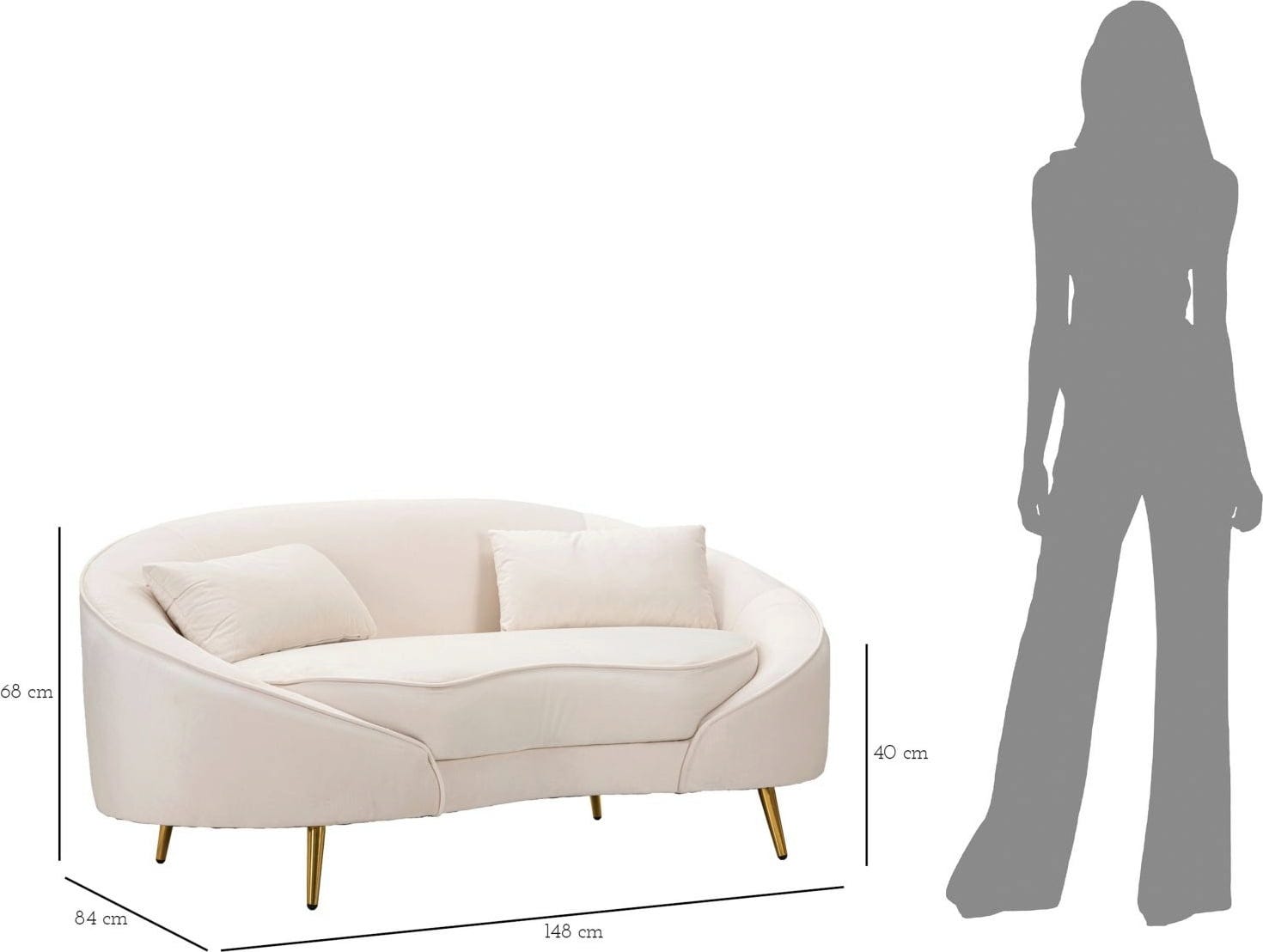 Nadaj swojemu salonowi odrobinę elegancji, świeżości i luksusowego komfortu dzięki tej stylowej sofie dwuosobowej! Luksusowa, miękka tkanina obiciowa w jasnym, kremowym odcieniu oraz miękkie, zachęcające linie zakrzywionego, asymetrycznego kształtu przyciągają wzrok.