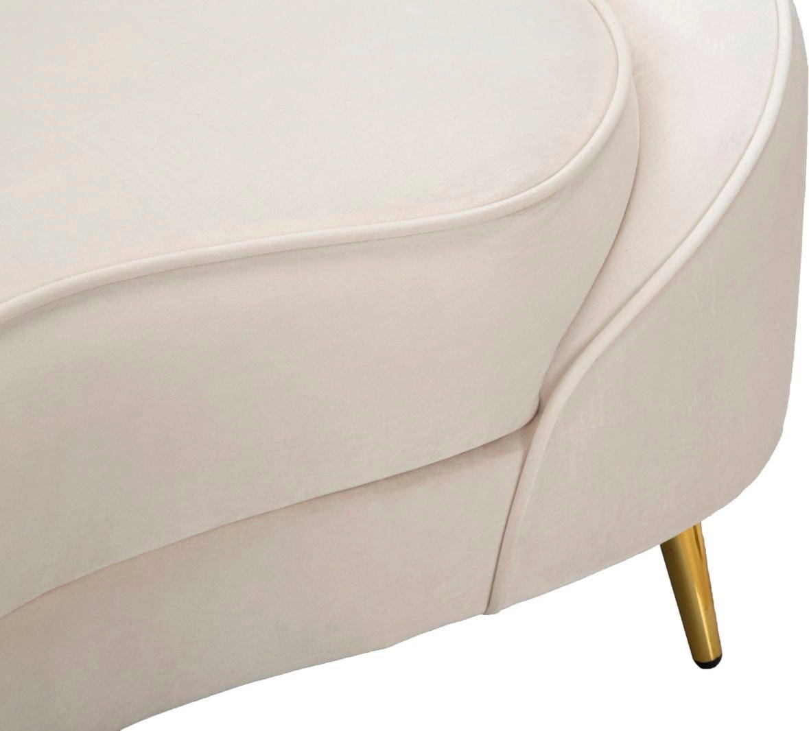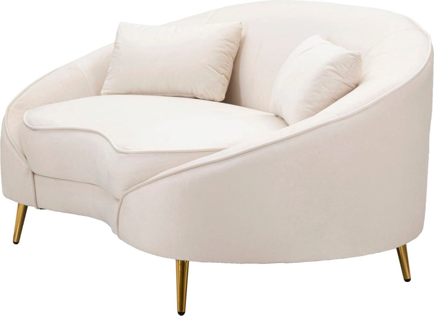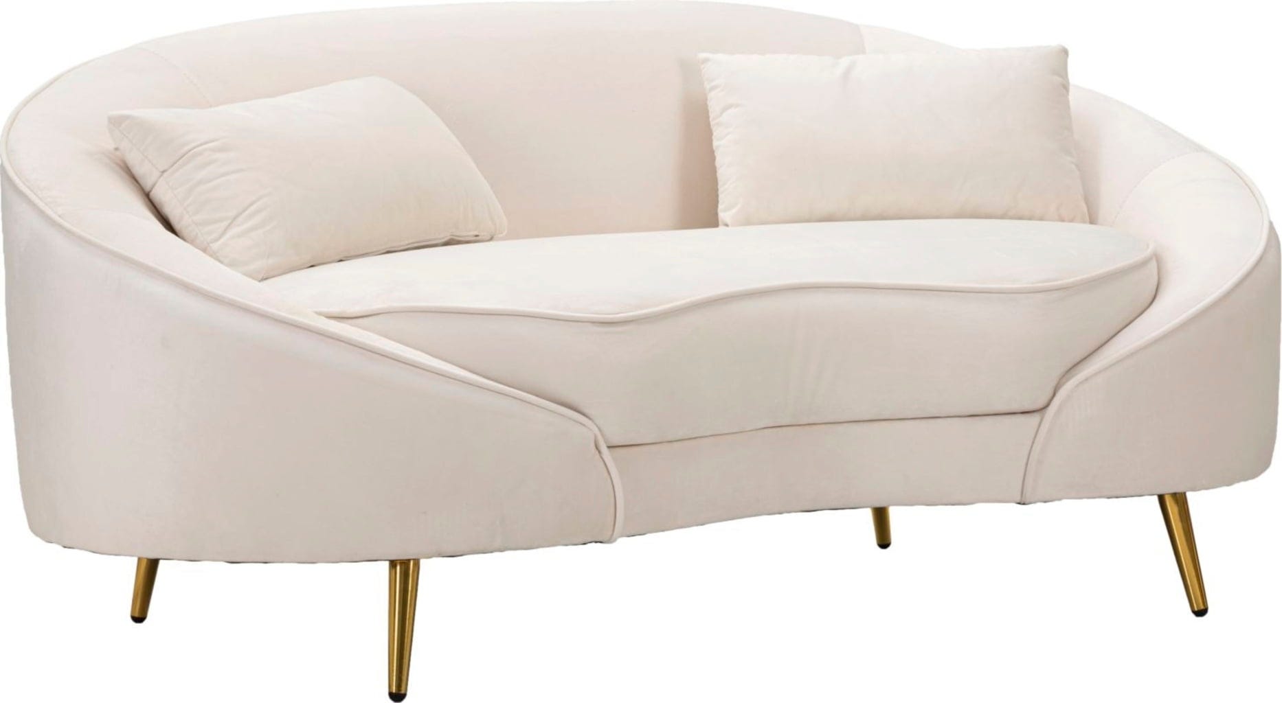 Nadaj swojemu salonowi odrobinę elegancji, świeżości i luksusowego komfortu dzięki tej stylowej sofie dwuosobowej! Luksusowa, miękka tkanina obiciowa w jasnym, kremowym odcieniu oraz miękkie, zachęcające linie zakrzywionego, asymetrycznego kształtu przyciągają wzrok.