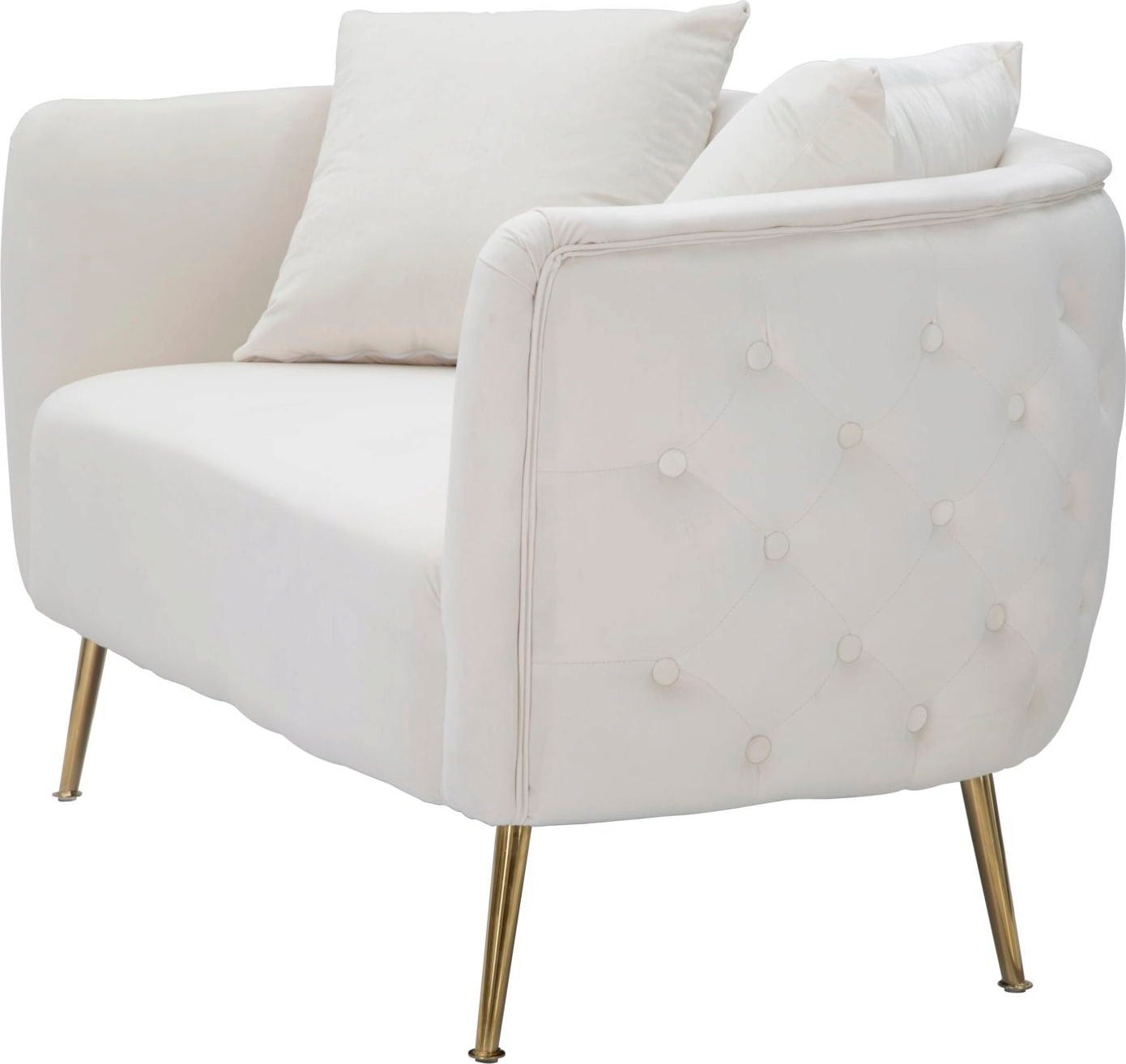 Metalowe nogi w kolorze złotym tworzą elegancki kontrast z tkaniną, a połączenie złota i aksamitu tworzy wyjątkowy styl – w zestawie znajdują się dwie pasujące poduszki!