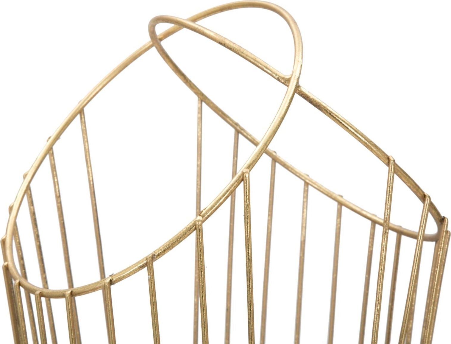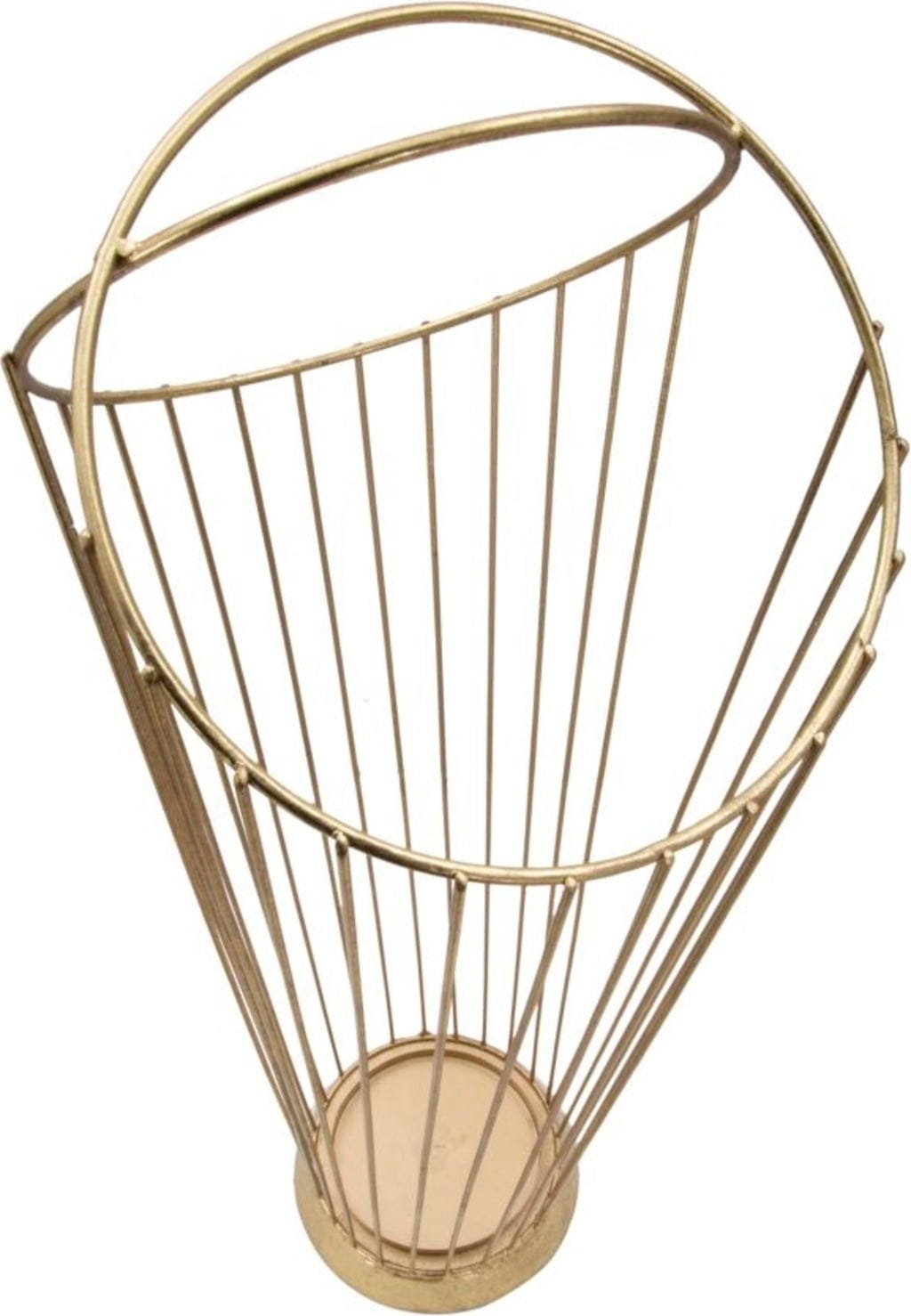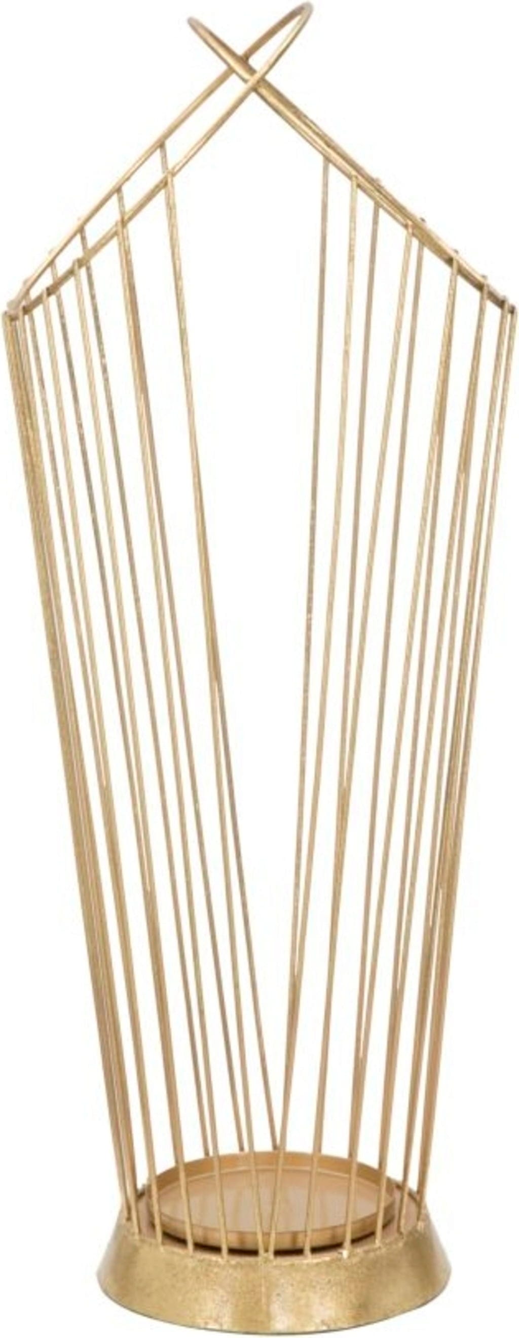 Filigranowe metalowe pręty zbiegają się u góry w kunsztownie skrzyżowaną formę, co nadaje obiektowi niemal rzeźbiarski charakter. Solidna podstawa zapewnia stabilność i sprawia, że podłoga pozostaje czysta i sucha nawet w deszczowe dni.
