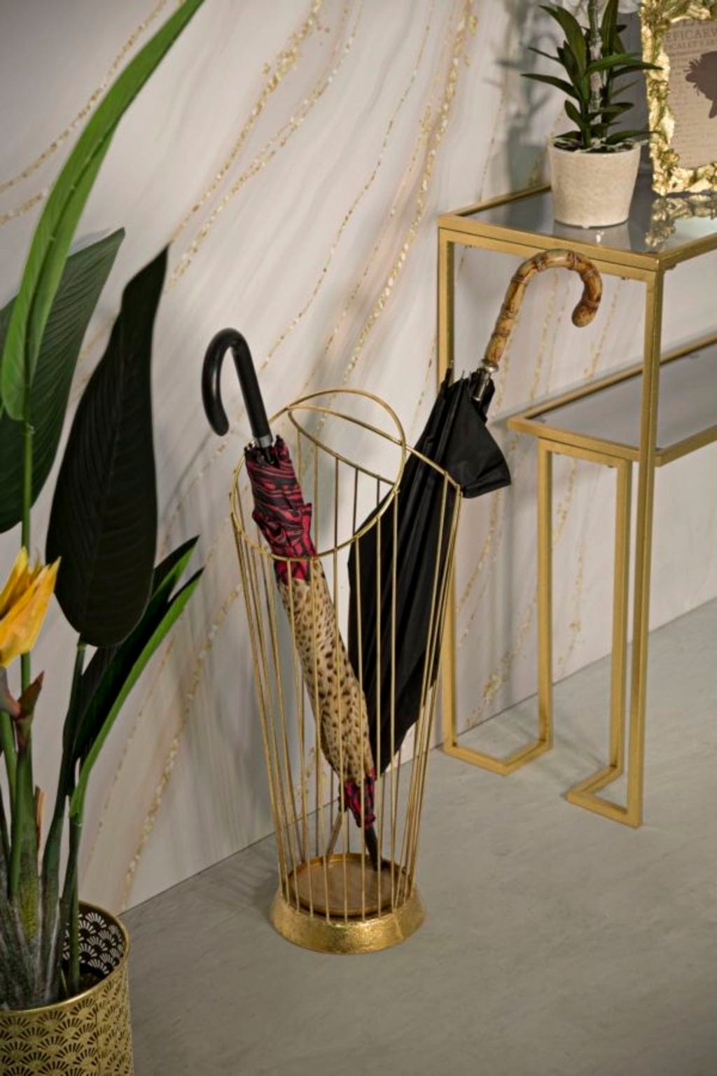 Postaw na luksusowy akcent w swoim przedpokoju dzięki stojakowi na parasole Glam Stick B marki Mauro Ferretti. Ten elegancki stojak wykonany ze stali w kolorze złotym zachwyca minimalistycznym designem, który idealnie łączy funkcjonalność z nowoczesną sztuką.