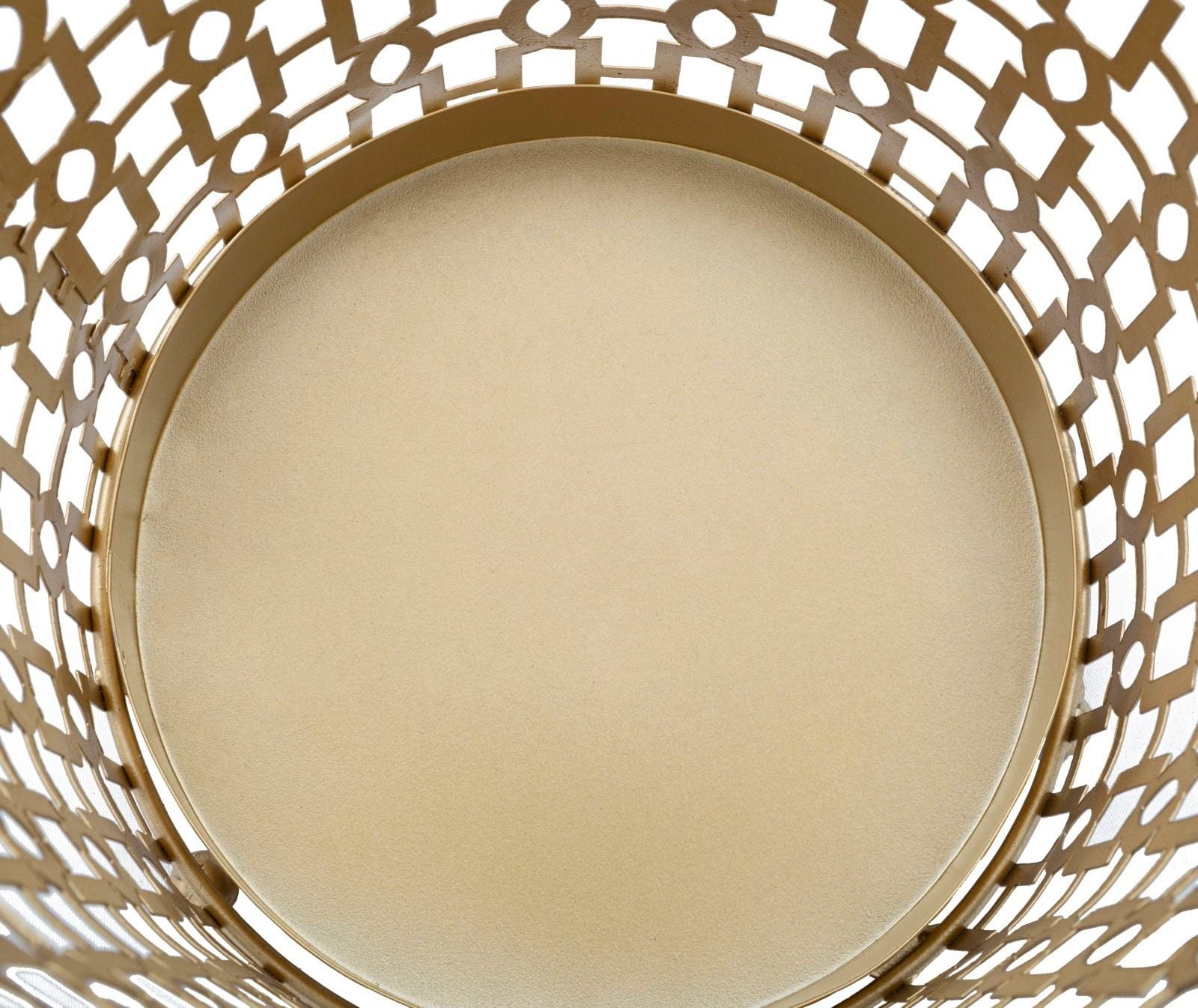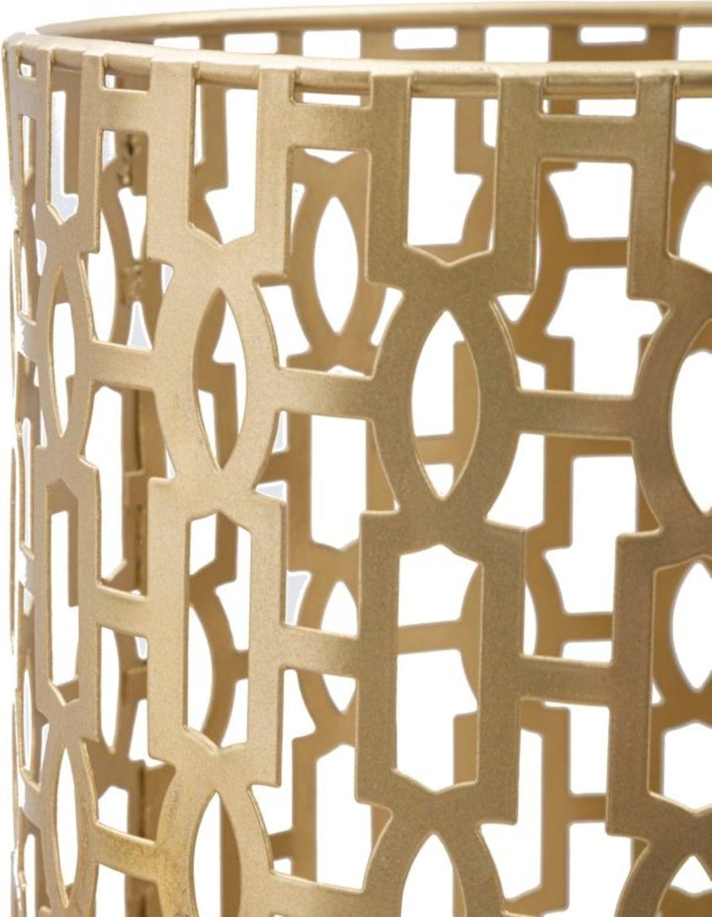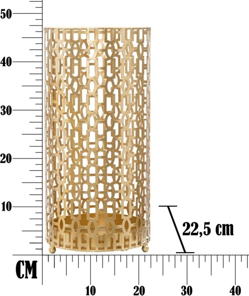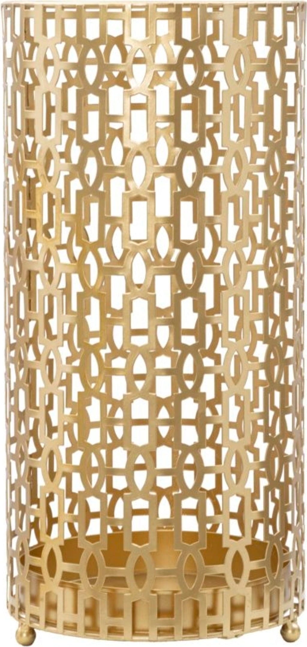Nadaj swojemu przedpokojowi ekskluzywny charakter dzięki stojakowi na parasole Oblin marki Mauro Ferretti. Ten okrągły stojak na parasole wykonany ze złotego metalu to znacznie więcej niż praktyczny dodatek – to prawdziwa deklaracja stylu. Kunsztowne, geometryczne zdobienia przypominają wspaniałe dekoracje barokowych kościołów, zachowując przy tym nowoczesną lekkość.