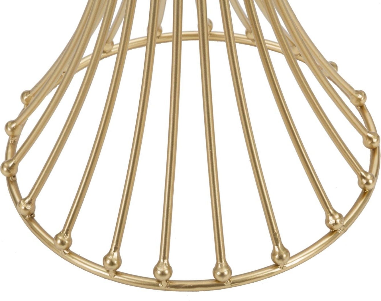 Podstawa składa się z licznych pionowych metalowych prętów, które elegancko zwężają się w środku i są ozdobione na końcach małymi, błyszczącymi kulkami. Dopełnieniem projektu jest blat z wysokiej jakości dymionego szkła, który nadaje meblowi nowoczesną głębię i idealnie współgra z ciepłym odcieniem złota. Czy to jako ekstrawagancki stolik pomocniczy, czy jako centralny punkt przyciągający wzrok – Centur wnosi do Twojego domu czysty styl glamour.