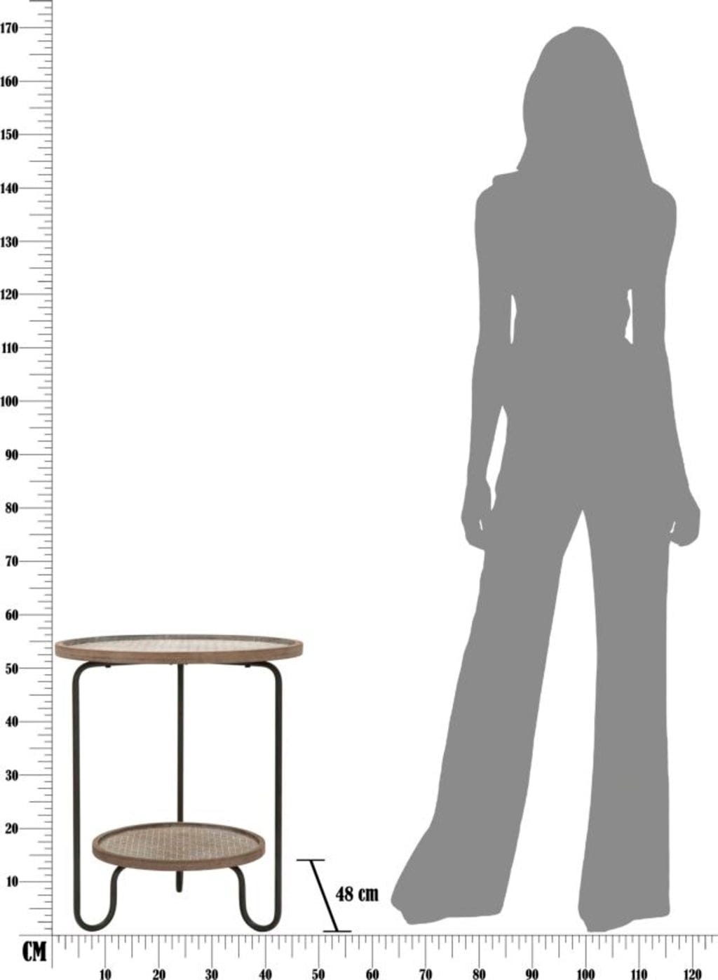 Ten okrągły stolik kawowy łączy praktyczną użyteczność z eleganckim, konkretnym designem! Stanowi on idealne uzupełnienie każdego kącika do czytania lub salonu. Design charakteryzuje się prostymi, ale wyrazistymi liniami, które definiuje ciemny metalowy stelaż.