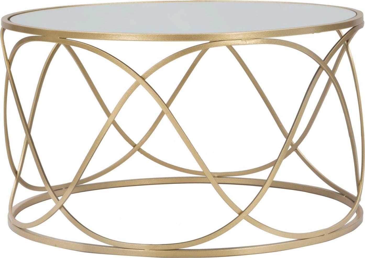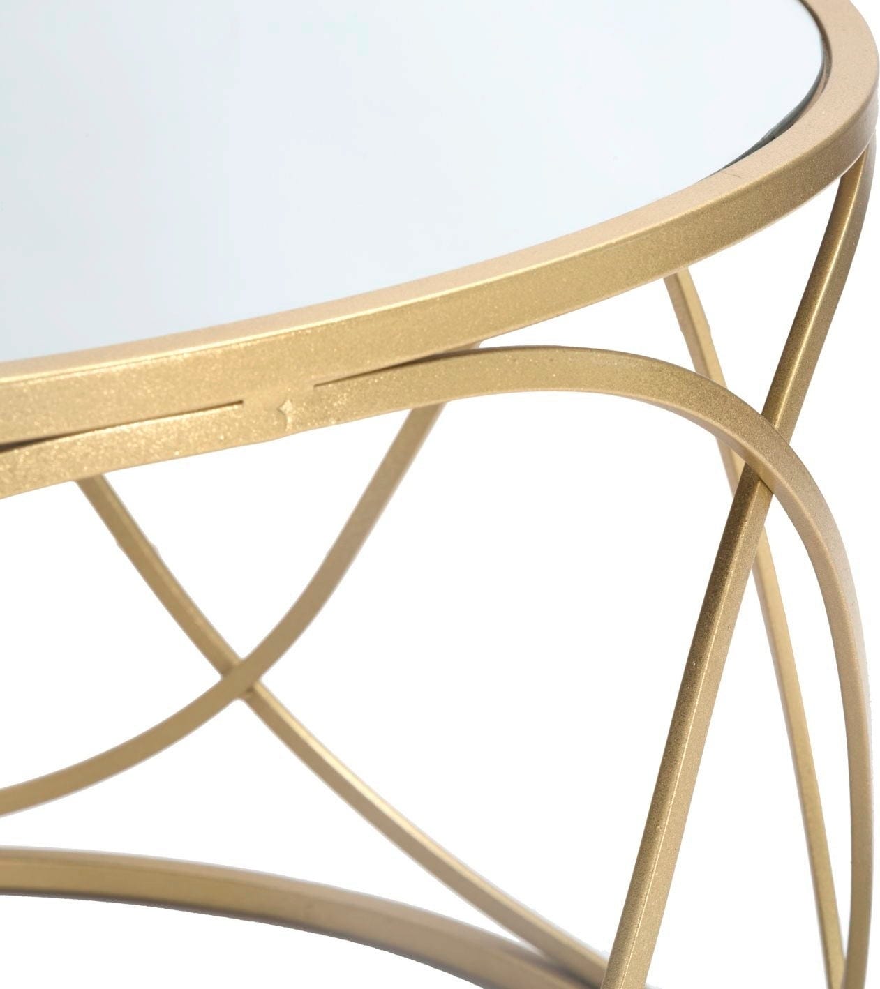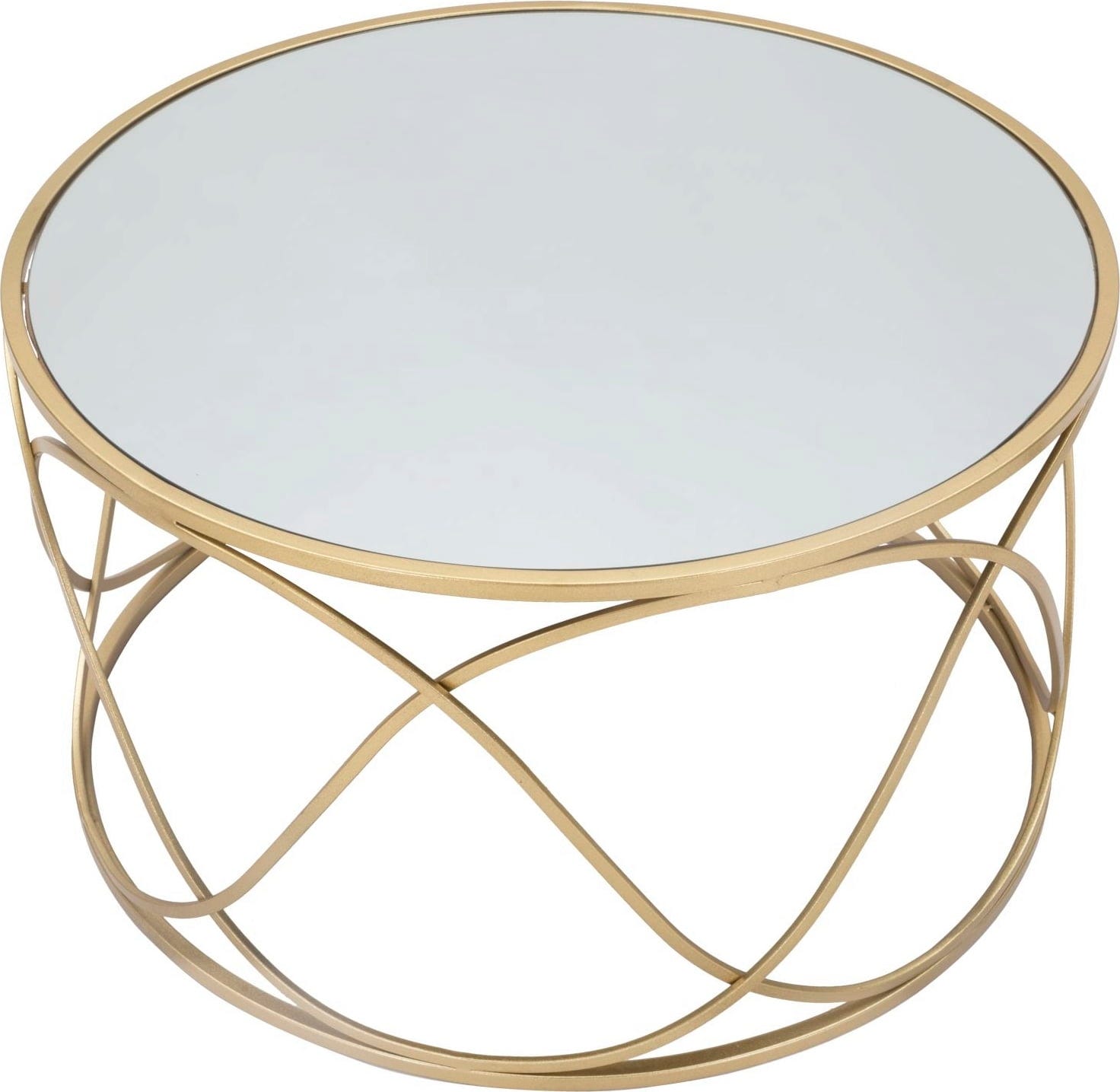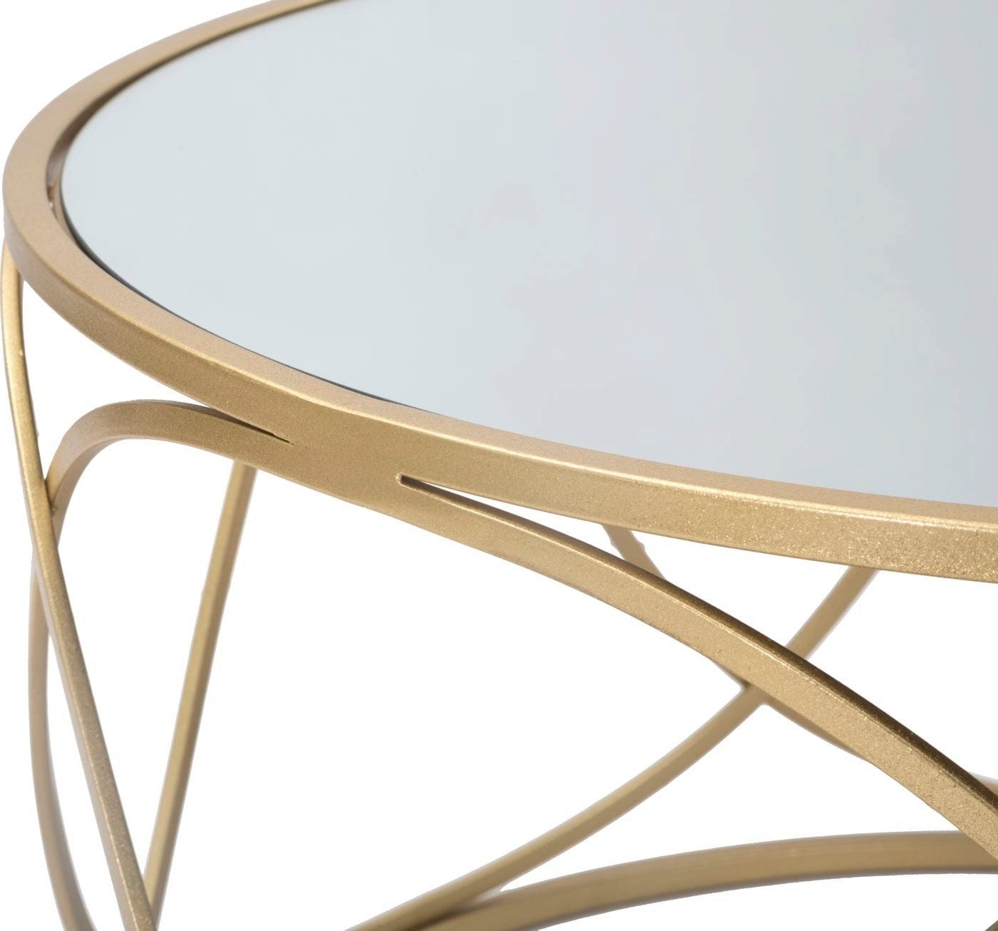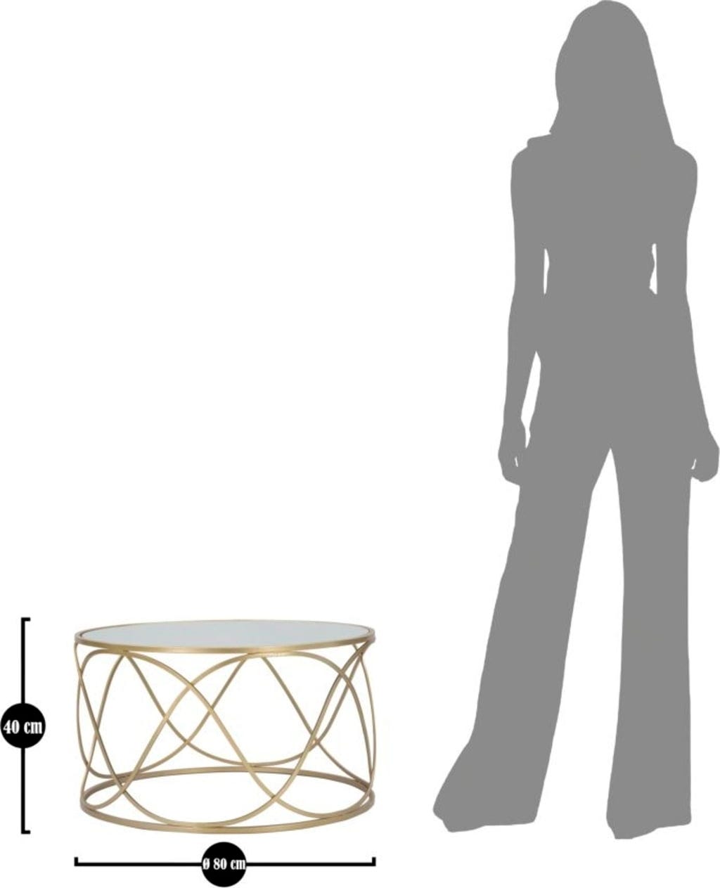 Dodaj luksusowy i odprężający akcent do swojego salonu dzięki temu eleganckiemu, okrągłemu stolikowi kawowemu! Połączenie błyszczącego metalu w kolorze złotym i lustrzanego szklanego blatu natychmiast nadaje każdemu pomieszczeniu odrobinę klasy i ponadczasowego stylu glamour. Szczególnym atutem jest otwarta konstrukcja stelaża, którego delikatnie zakrzywiona forma tworzy wizualną lekkość i harmonię.