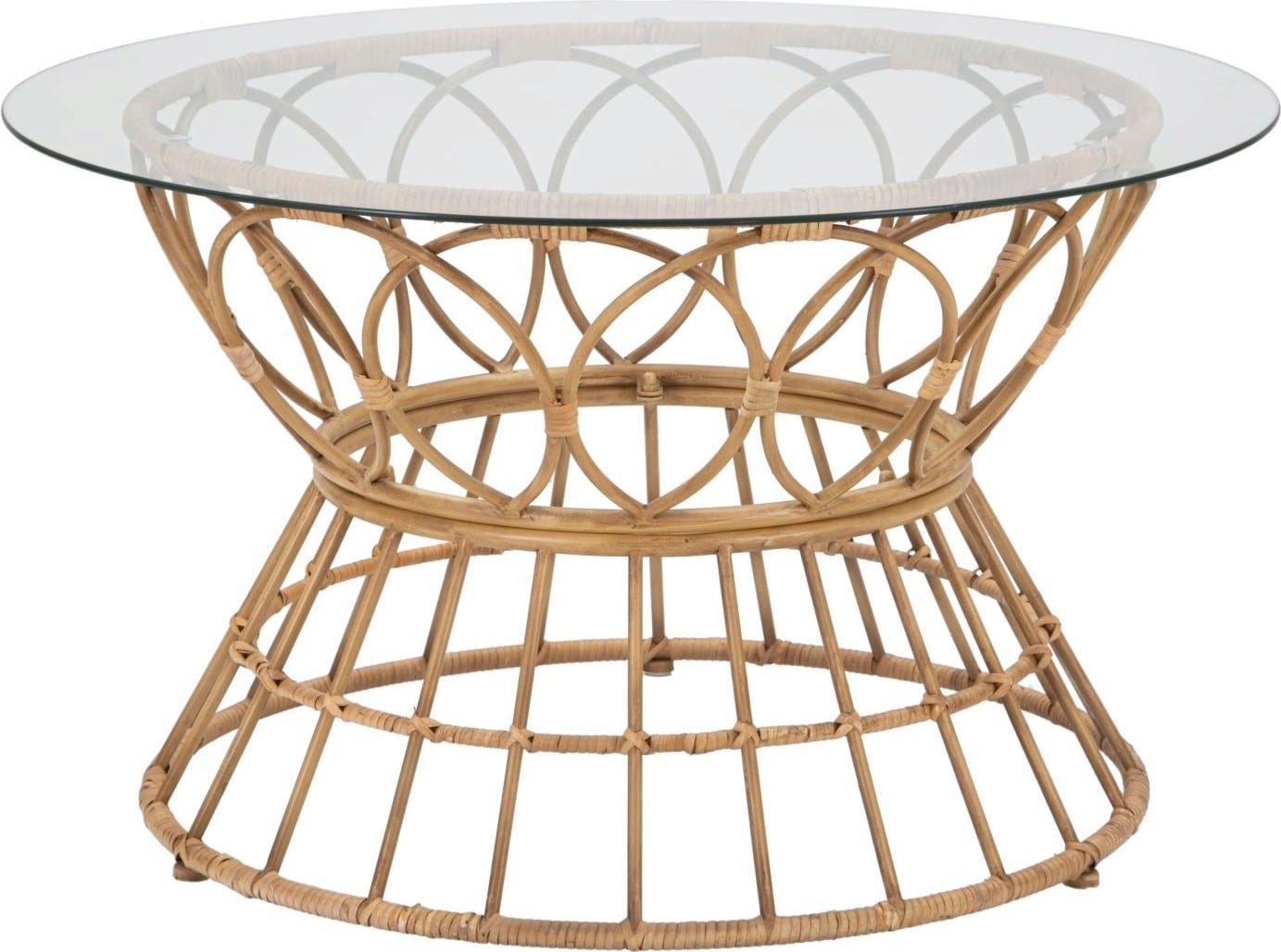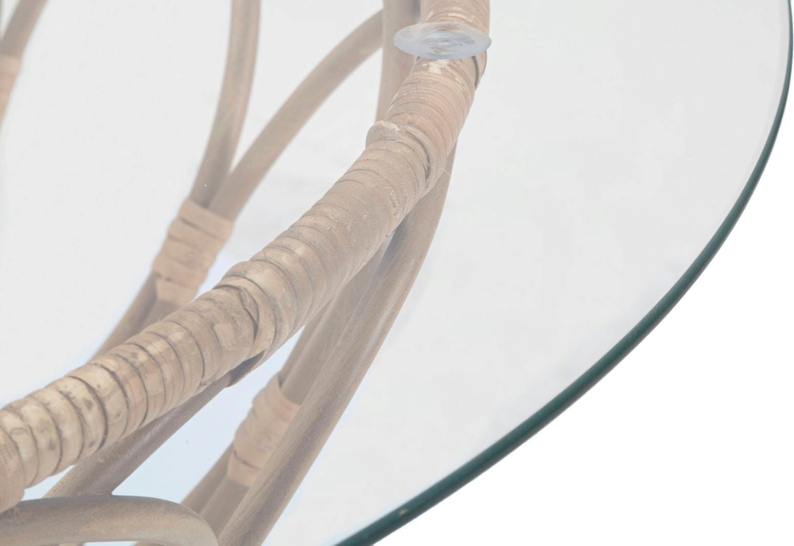 Stelaż wykonany z metalu o wysokiej jakości wyglądzie rattanu ma kształt charakterystycznej klepsydry, w której kunsztownie przeplatane elementy kołowe tworzą fascynujący akcent. Dopełnieniem projektu jest obszerny blat z przezroczystego szkła, który odsłania filigranową plecionkę i nadaje stolikowi szlachetną przejrzystość. Dzięki ponadczasowej formie Panama Circle idealnie pasuje do każdego stylu wnętrza – od swobodnego boho-chic po nowoczesne aranżacje typu loft.