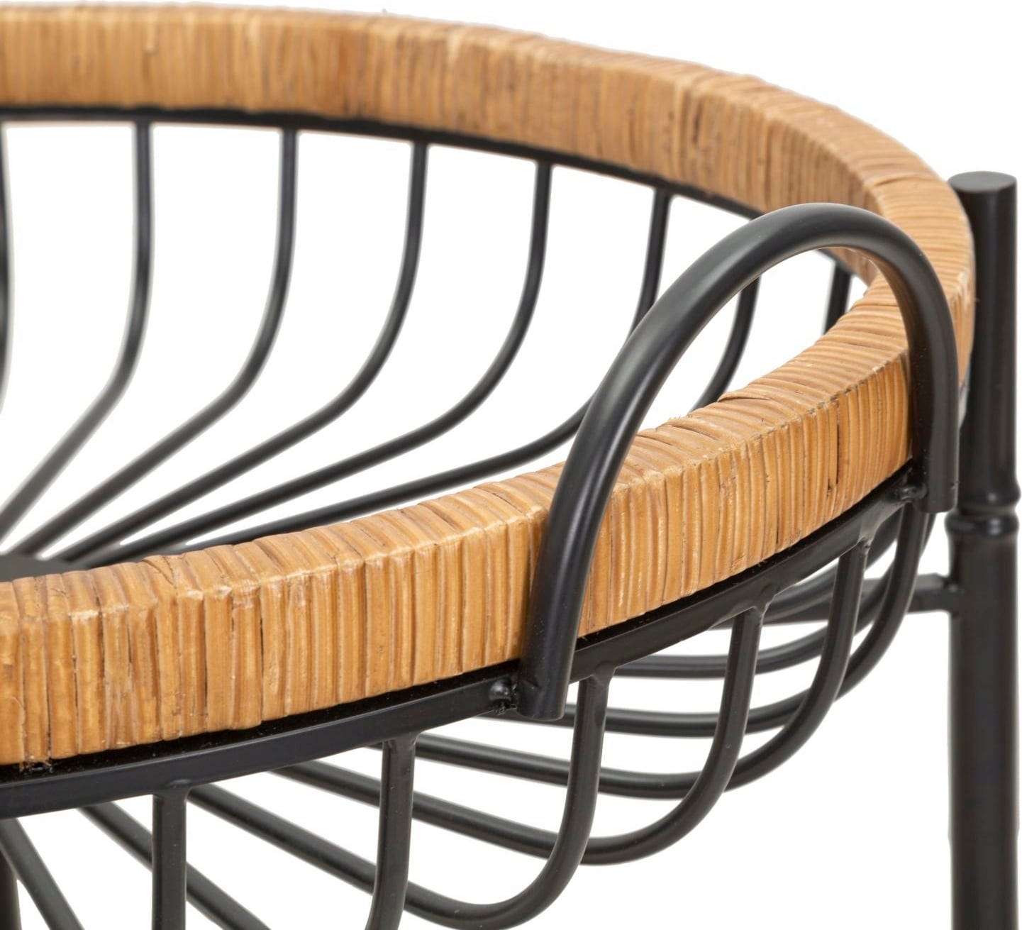 Czarny metalowy stelaż podtrzymuje dwa pojemne kosze, których filigranowe metalowe pręty są otoczone ciepłą rattanową ramą. Dzięki czterem praktycznym kółkom i zintegrowanym uchwytom Cebu można bez wysiłku przesuwać i elastycznie wykorzystywać tam, gdzie jest akurat potrzebny – jako barek, stolik pomocniczy lub dekoracyjny stojak na rośliny!