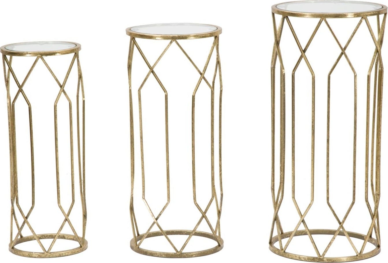 Każdy stolik zwieńczony jest przezroczystym, szklanym blatem. Czy to jako postument pod rzeźby, czy jako stoliki pomocnicze ustawione w grupie – to trio wniesie odrobinę klasy do każdego pomieszczenia!