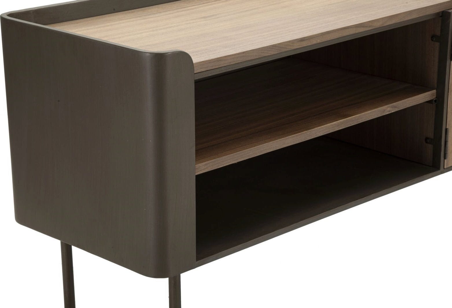Szafka oferuje dwie otwarte półki, które są idealnym miejscem na dekodery i konsole. Za dwojgiem drzwiczek znajduje się dodatkowe miejsce do przechowywania, idealne na filmy lub akcesoria. Ten lowboard w idealny sposób łączy estetykę z funkcjonalnością, pozwalając zachować porządek i elegancję w salonie!