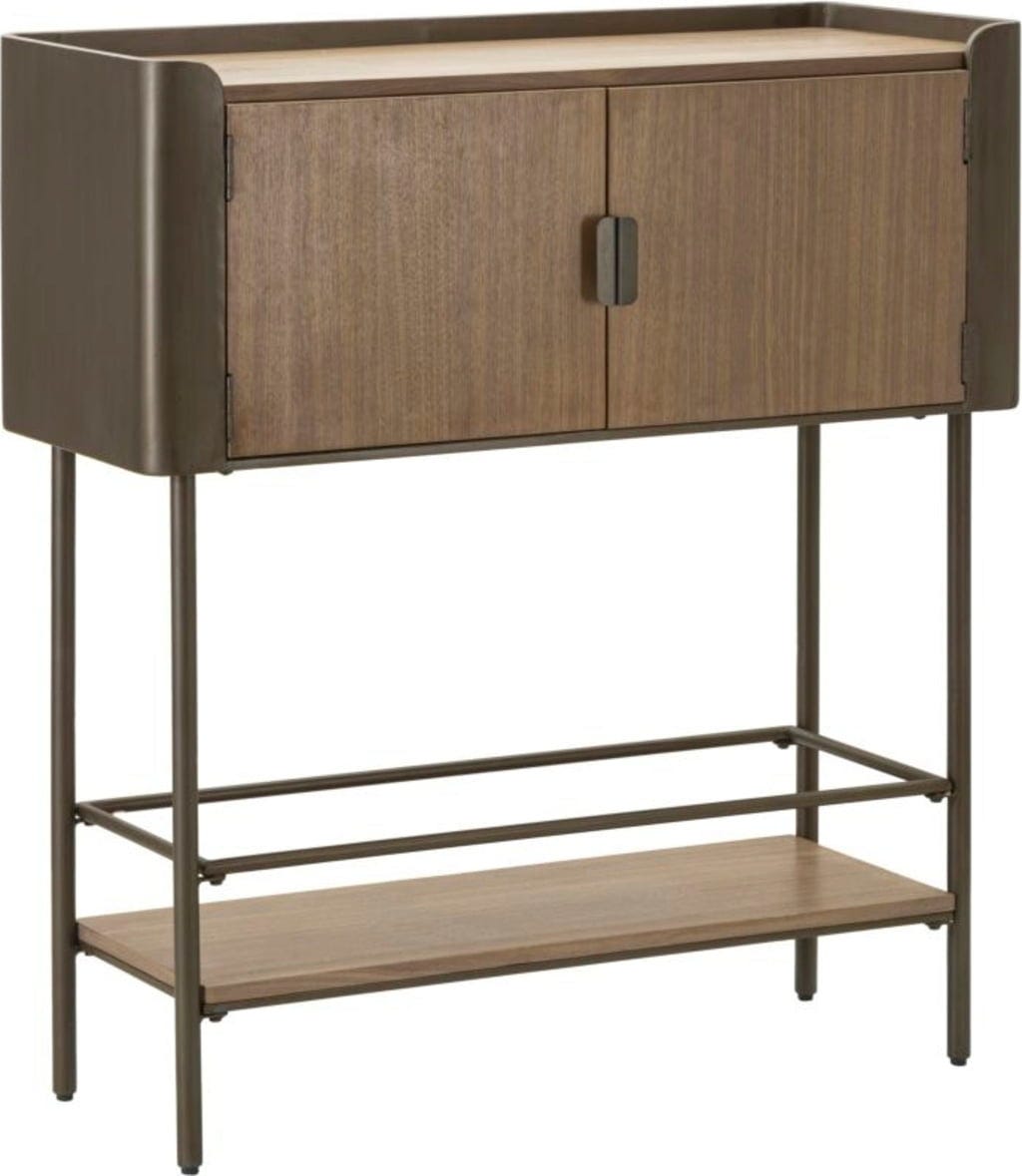 Uzupełnij swoje wnętrze o mebel, który łączy nowoczesny design z wysoką funkcjonalnością! Ta szafka zachwyca czystą, wyrazistą linią oraz atrakcyjnym kontrastem wytrzymałego metalu i ciepłego wyglądu drewna. Stanowi idealne dopełnienie każdego wnętrza. Korpus oferuje dyskretne miejsce do przechowywania za dwojgiem drzwi.