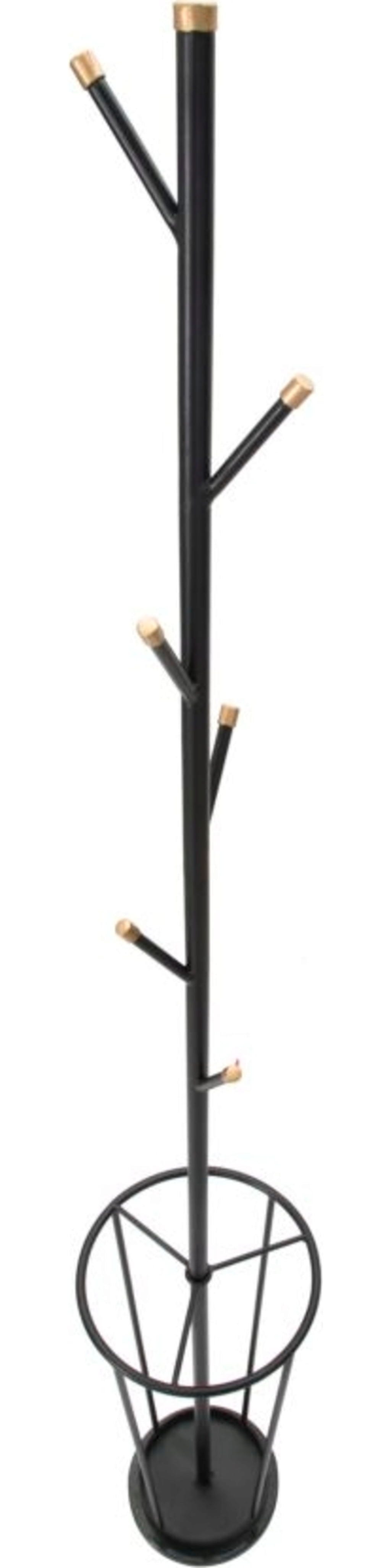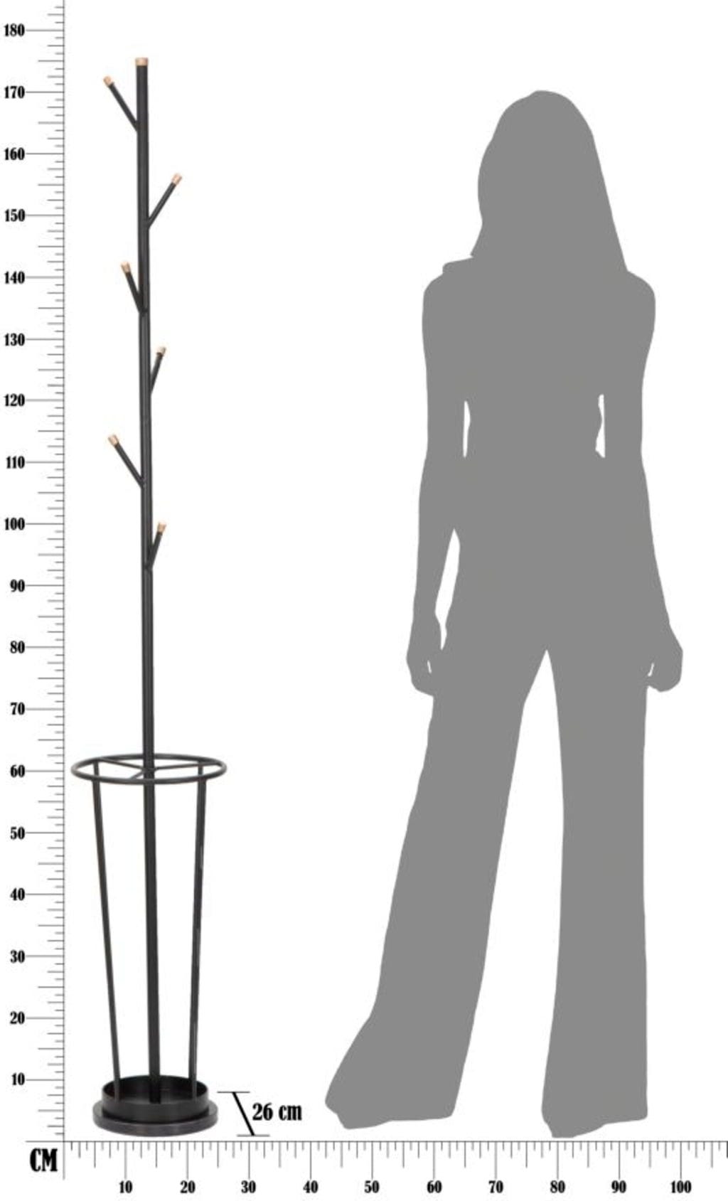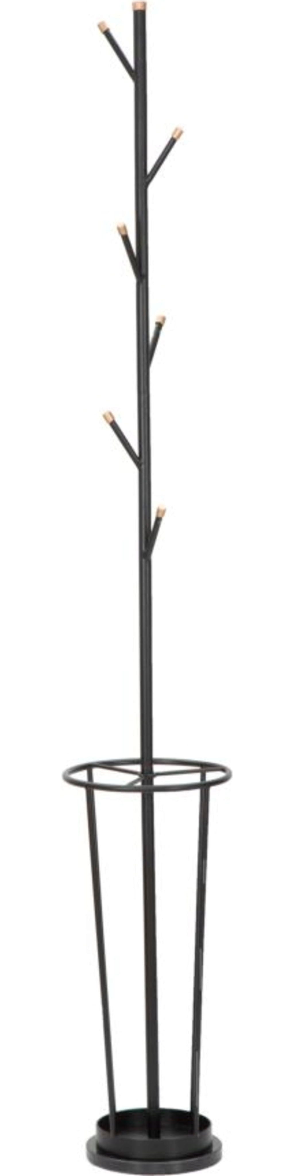 Wąska kolumna o strukturze przypominającej drzewo jest wyposażona w kilka przesuniętych względem siebie haczyków, które na końcach zostały ozdobione szlachetnymi jasnymi akcentami, oferując mnóstwo miejsca na kurtki i akcesoria. Wyjątkowo praktyczny: w dolnej części zintegrowano okrągły stojak na parasole, który sprawia, że parasole są zawsze pod ręką i pomaga utrzymać porządek. Dzięki smukłej sylwetce Glam Black idealnie pasuje do każdego przedpokoju – bez względu na to, jak jest on kompaktowy!