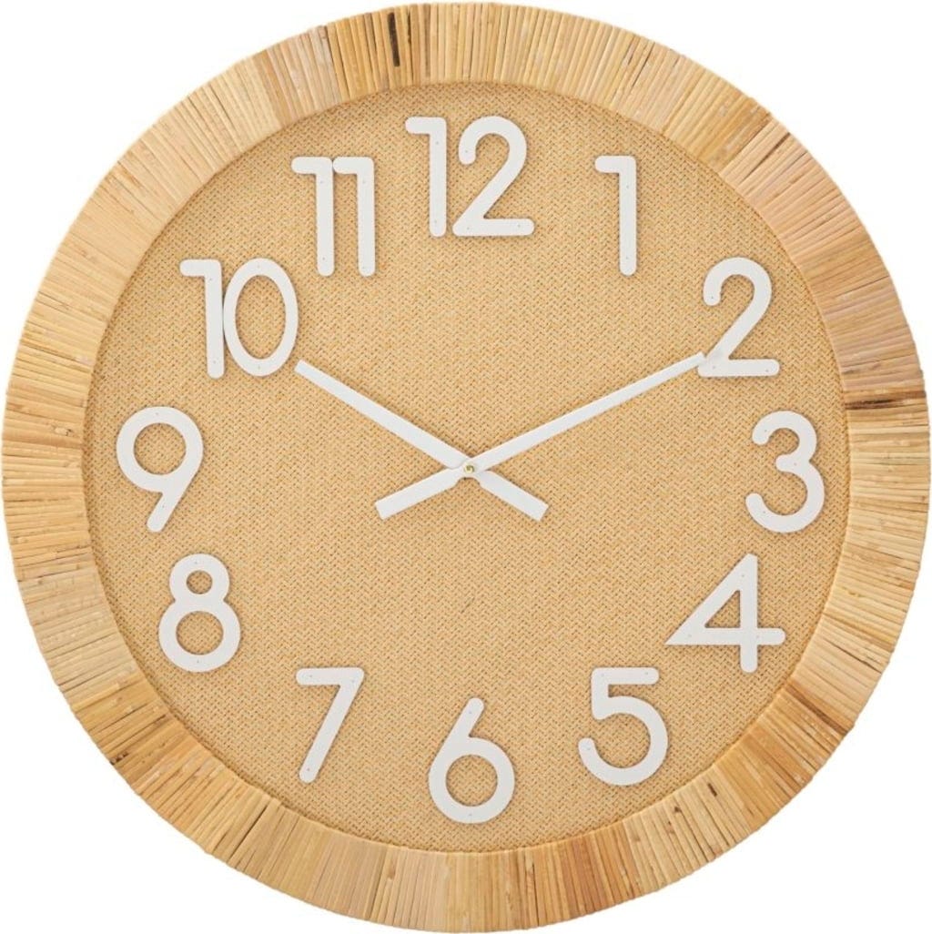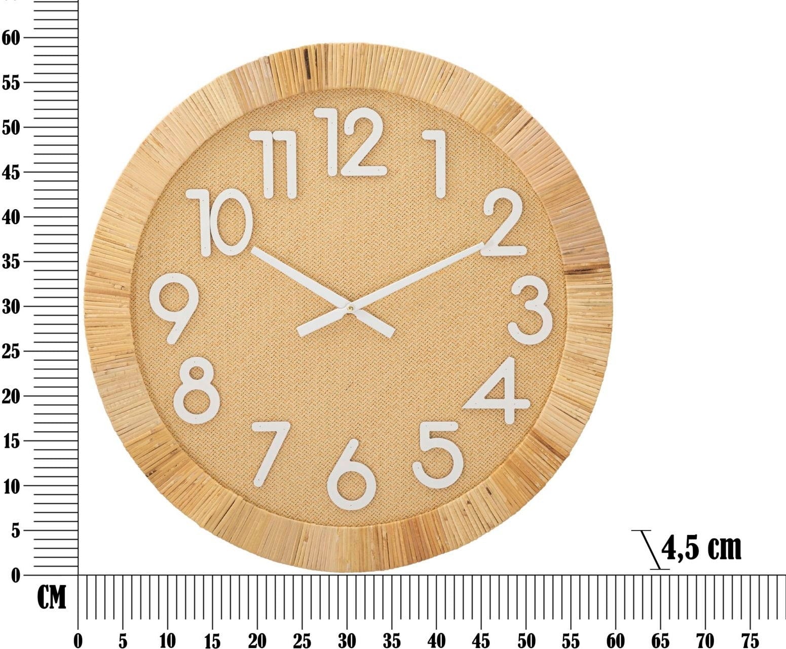 Wprowadź do swojego domu relaksującą, a zarazem stylową atmosferę dzięki zegarowi ściennemu Boho Plus marki Mauro Ferretti. Ten okrągły zegar ścienny zachwyca wyjątkowo kunsztownie wykonaną ramą, która nadaje całości organiczną strukturę. Tarcza przekonuje ciepłym wyglądem tkaniny lub plecionki w jasnobeżowym kolorze, który idealnie współgra z dużymi, białymi cyframi.
