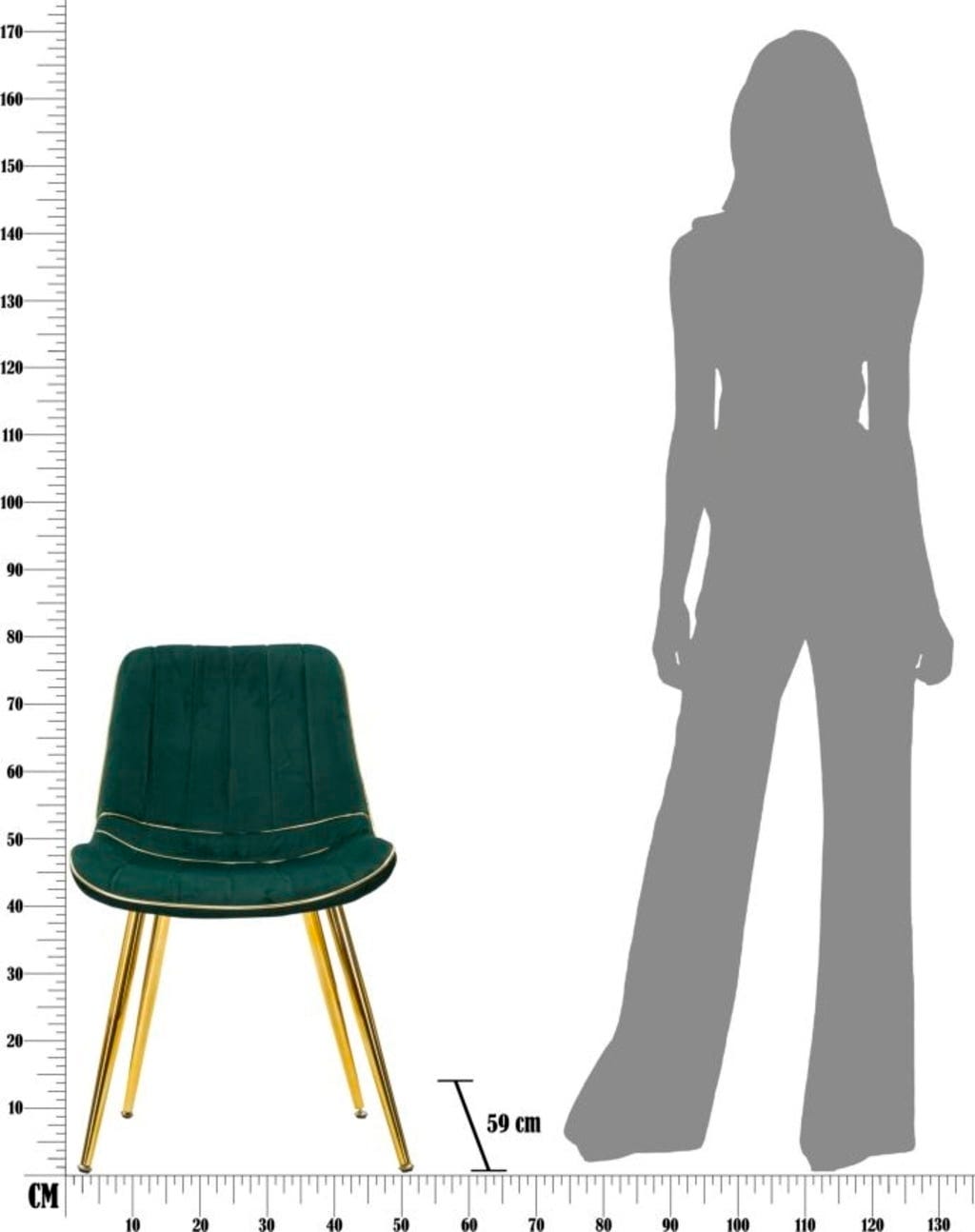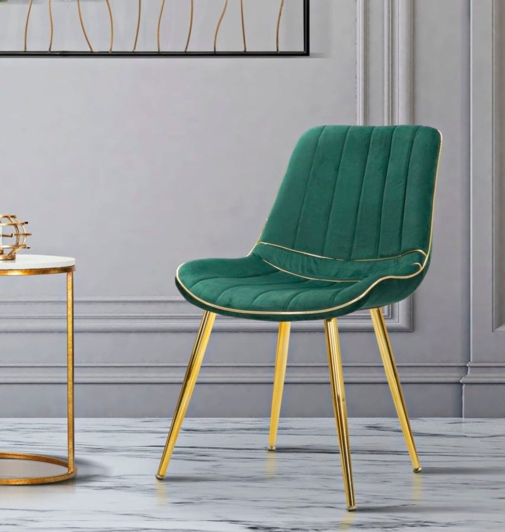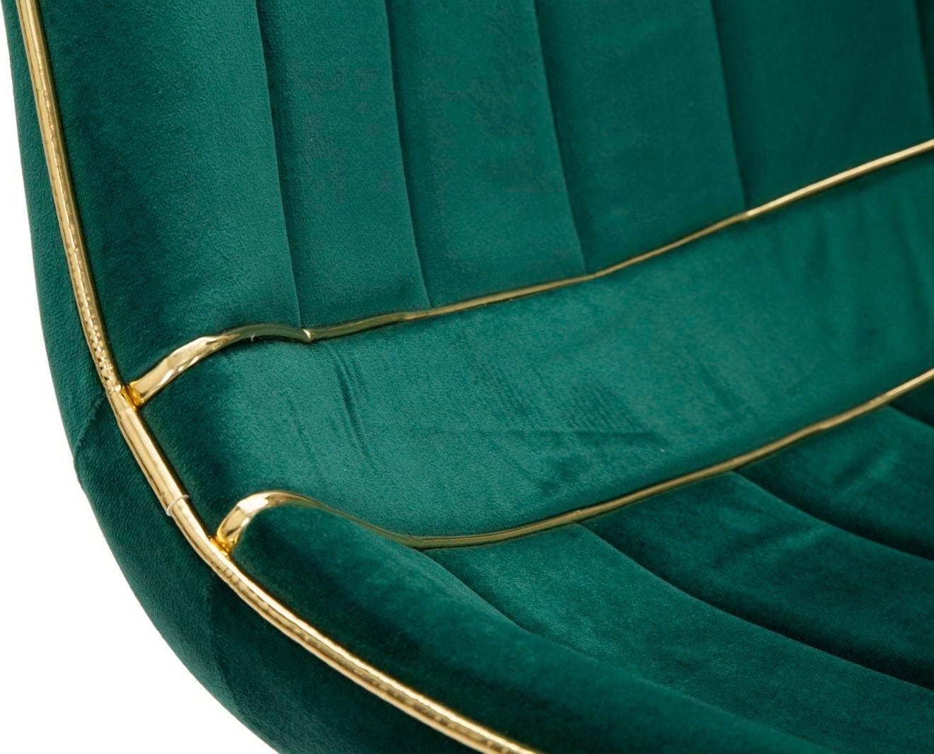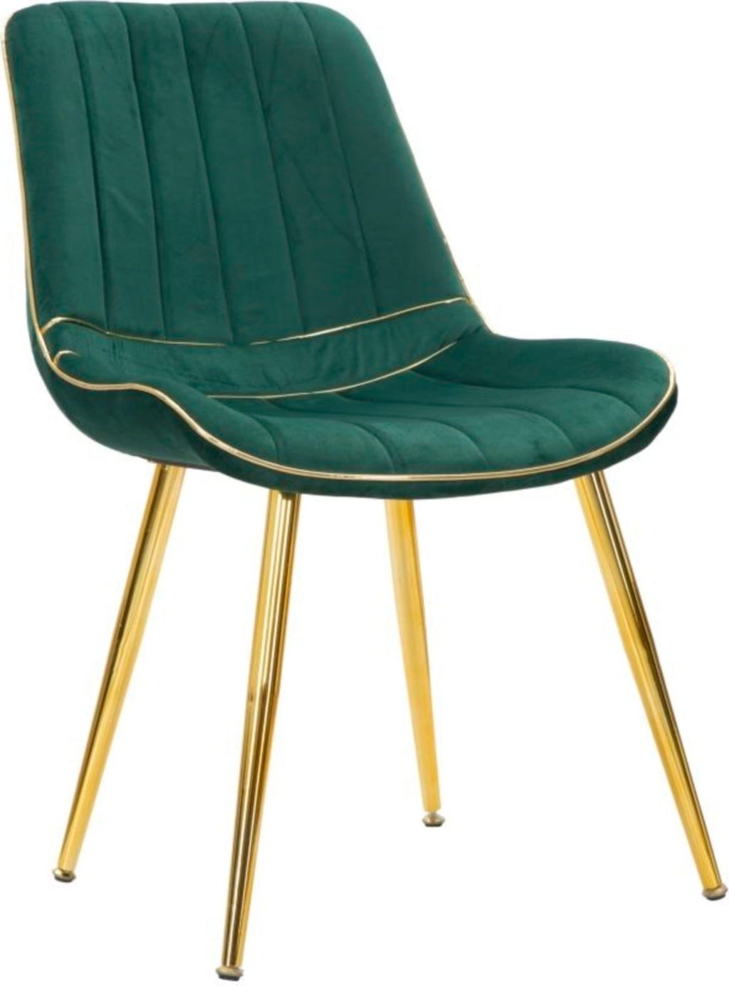 Szczególną uwagę przyciągają złote akcenty wokół siedziska, które idealnie współgrają ze smukłymi, metalowymi nogami w kolorze złotym. Czy to na uroczyste kolacje, czy na relaksujące wieczory – połączenie głębokiej zieleni i lśniącego złota zapewnia atmosferę pełną szyku i odprężenia.