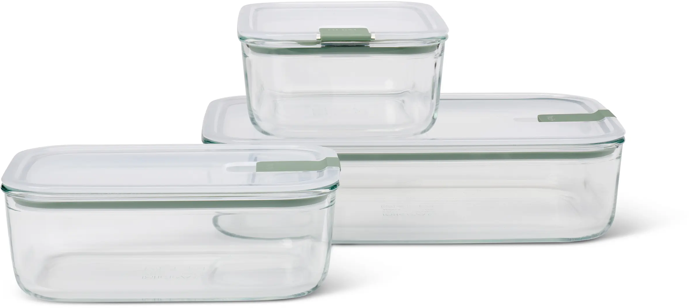 Mepal Szklane pojemniki do przechowywania żywności EasyClip, 3 szt. – Nordic Sage, 2 x 1000 ml + 2250 ml