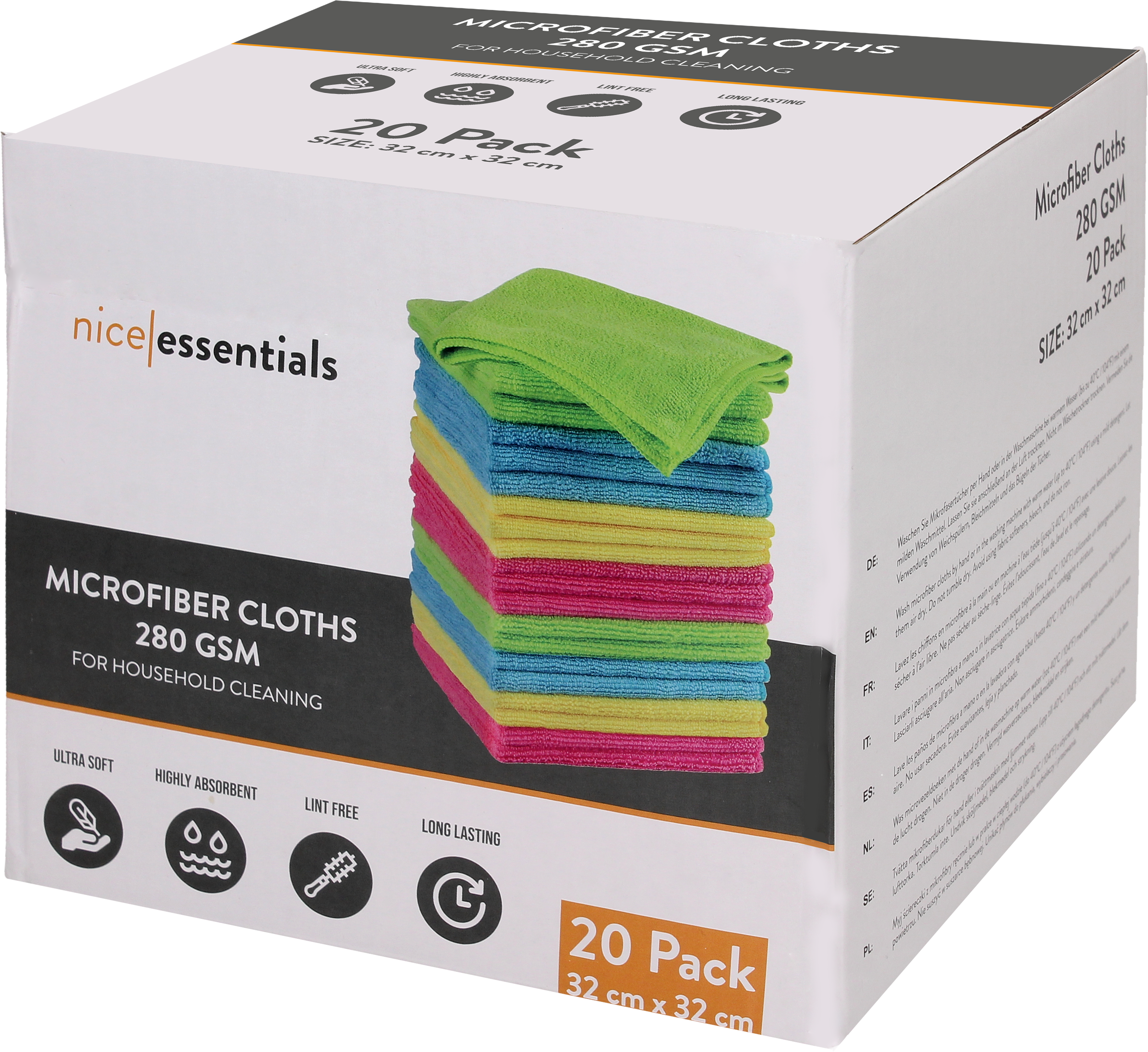 nice essentials Ściereczki czyszczące z mikrofibry premium 32 x 32 cm, zestaw, 20 sztuk