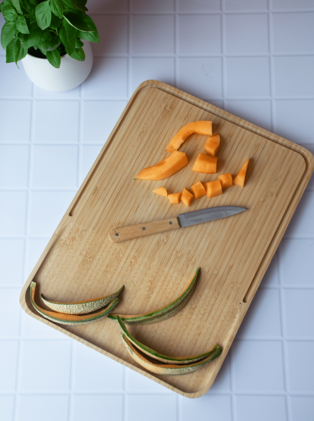 Praktyczny odpływ soku na krawędzi deski zapewnia maksymalną wygodę podczas użytkowania. Doskonale przechwytuje wodę i nadmiar soku, który wydostaje się podczas krojenia, utrzymując obszar roboczy w czystości. Cienkie, ergonomicznie ukształtowane krawędzie deski sprawiają, że obsługa jest jeszcze łatwiejsza.