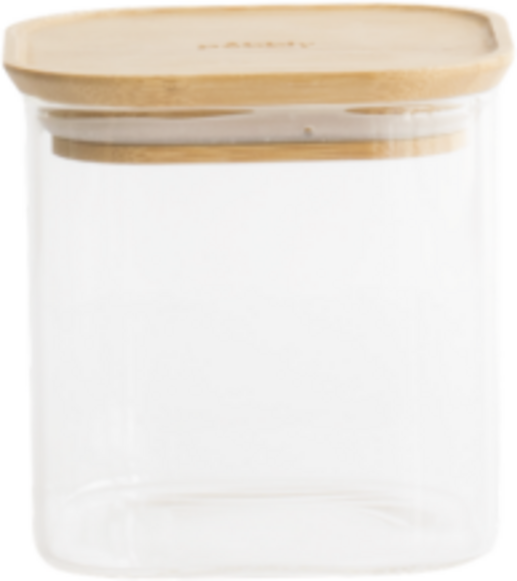 Pebbly Kwadratowy pojemnik ze szkła do przechowywania z pokrywą z bambusa, 0,8 L