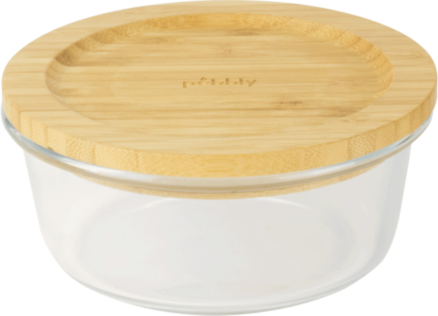 Pebbly Pojemnik szklany z pokrywą bambusową, okrągły 620 ml