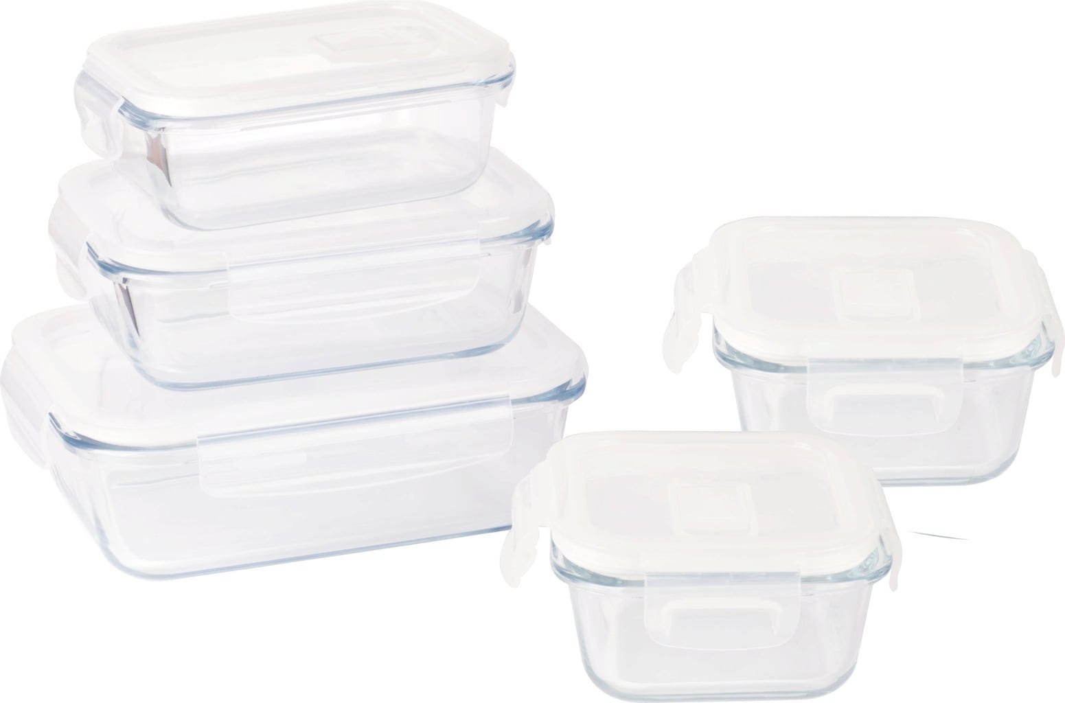 Ten praktyczny zestaw składa się z trzech prostokątnych i dwóch kwadratowych słoików do przechowywania o różnych pojemnościach.