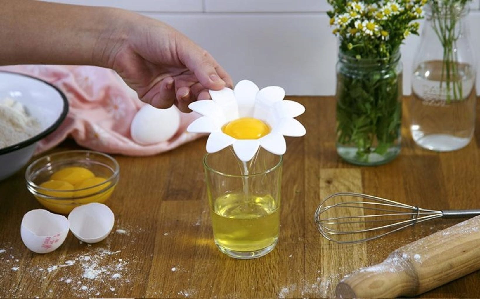 Z tym wspaniałym kwiatkiem oddzielanie żółtka od białka nie jest więcej problemem. Włóż separator do szklanki i rozbij jajko. Białko spłynie do pojemnika, a żółto zostanie na górze kwiatka.