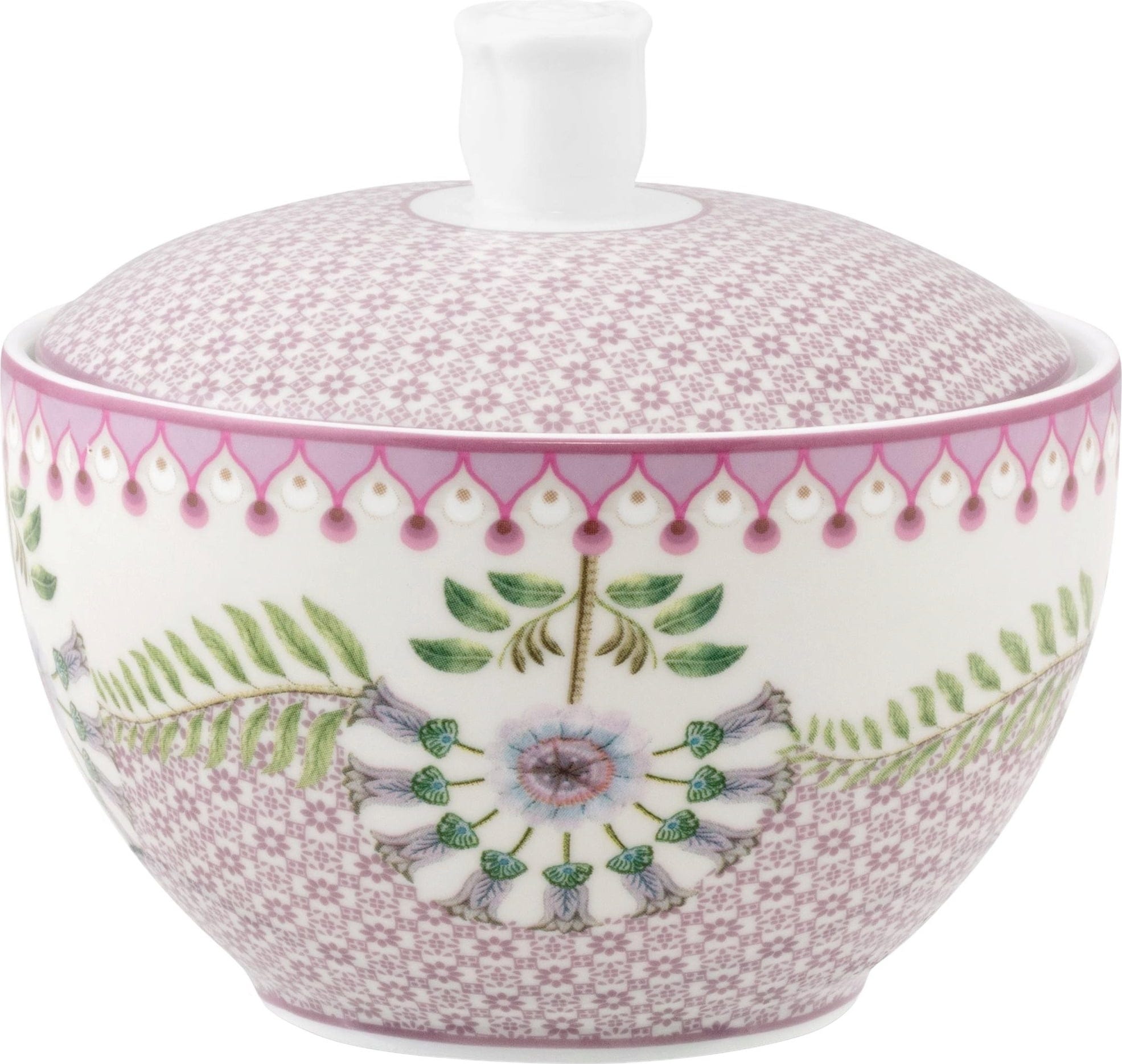 Nadaj swojemu kawowemu stołowi letni akcent dzięki tej przepięknej cukiernicy z kolekcji Lily-&-Lotus marki Pip Studio! Zachwyca ona swoim wyjątkowym designem z dużymi, graficznymi kwiatami i filigranowymi detalami. Dzięki pojemności 300 ml jest nie tylko ozdobą, ale także niezwykle praktycznym naczyniem na cukier lub drobne smakołyki.
