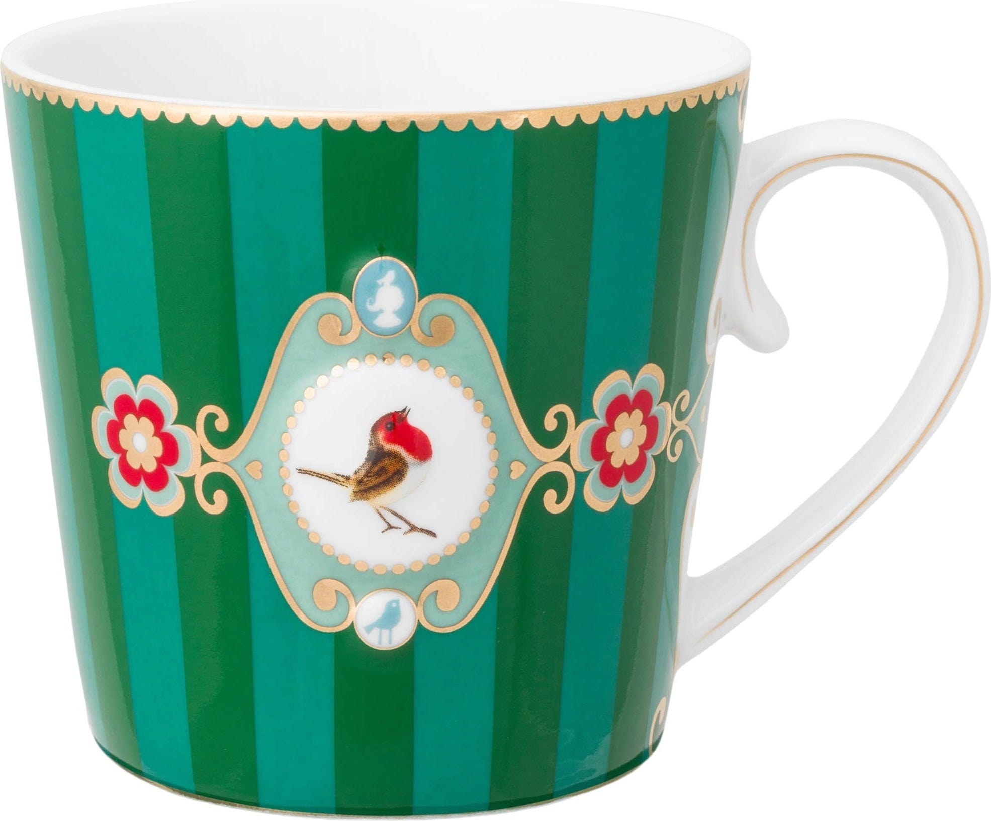 Pip Studio Filiżanka Love Birds w paski, duża, zielony (250 ml)