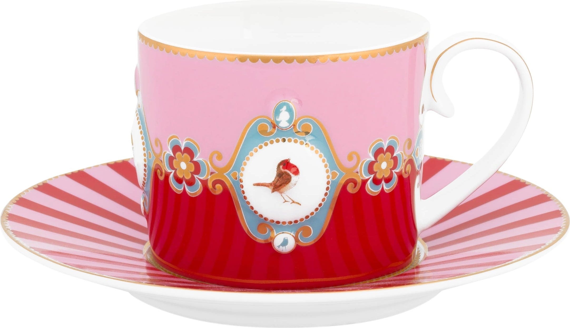 Pip Studio Love Birds filiżanka do cappuccino z podstawką, czerwony/różowy (200 ml)