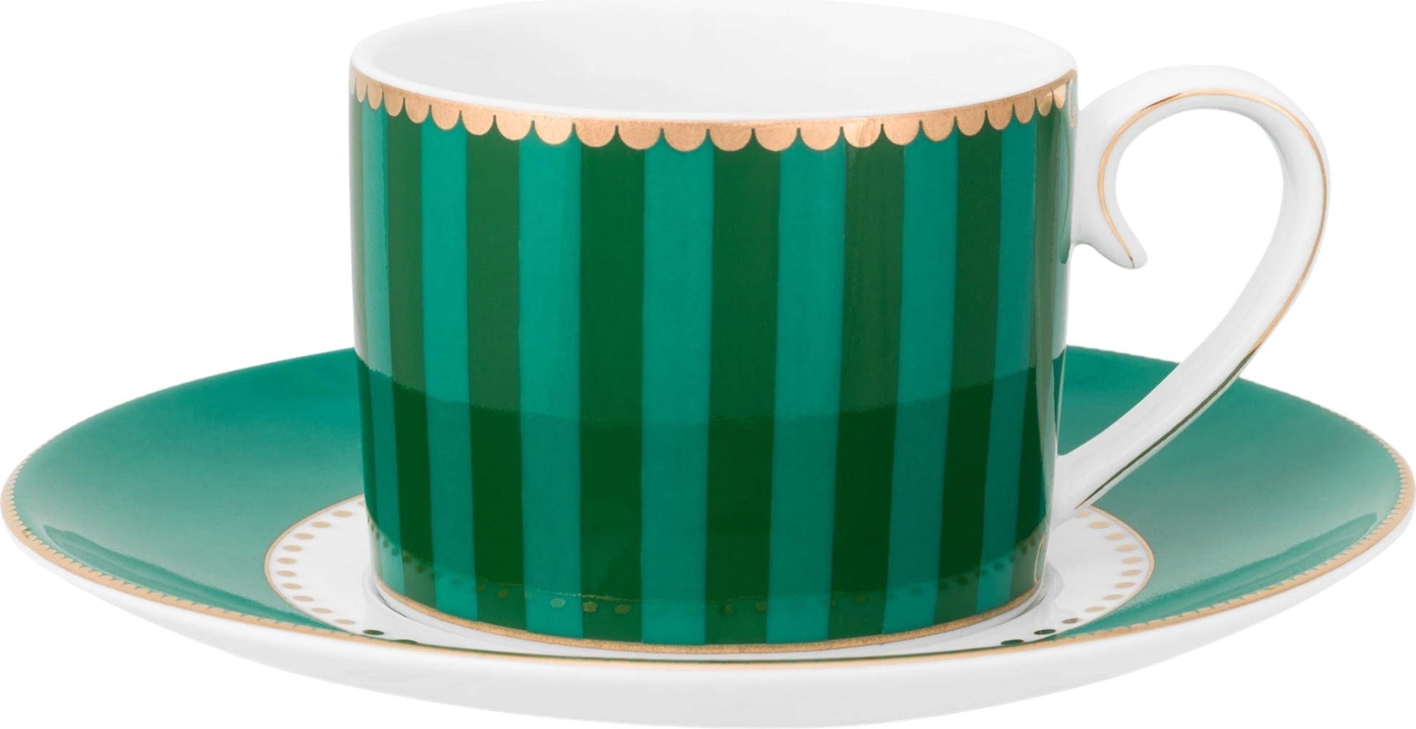 Pip Studio Love Birds filiżanka do espresso z podstawką, paski, zielony (125 ml)