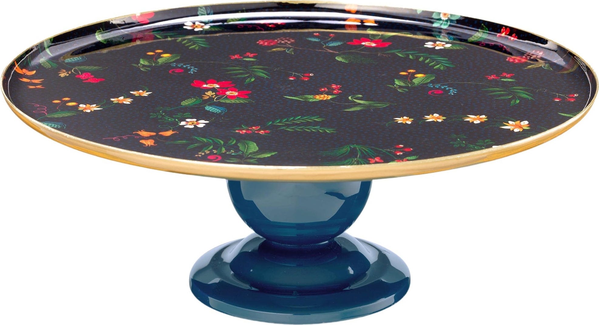 Zaprezentuj swoje domowe ciasta, torty lub babeczki na tej przepięknej paterze od Pip Studio! Zachwyca ona swoim wyjątkowym i luksusowym designem. Okrągły talerz utrzymany jest w głębokim, ciemnym granacie i ozdobiony żywym, bogatym w detale wzorem kwiatowym. To fantazyjne morze kwiatów nadaje talerzowi radosny, a zarazem szlachetny wygląd. Elegancka złota krawędź otacza talerz, zapewniając luksusowy kontrast.