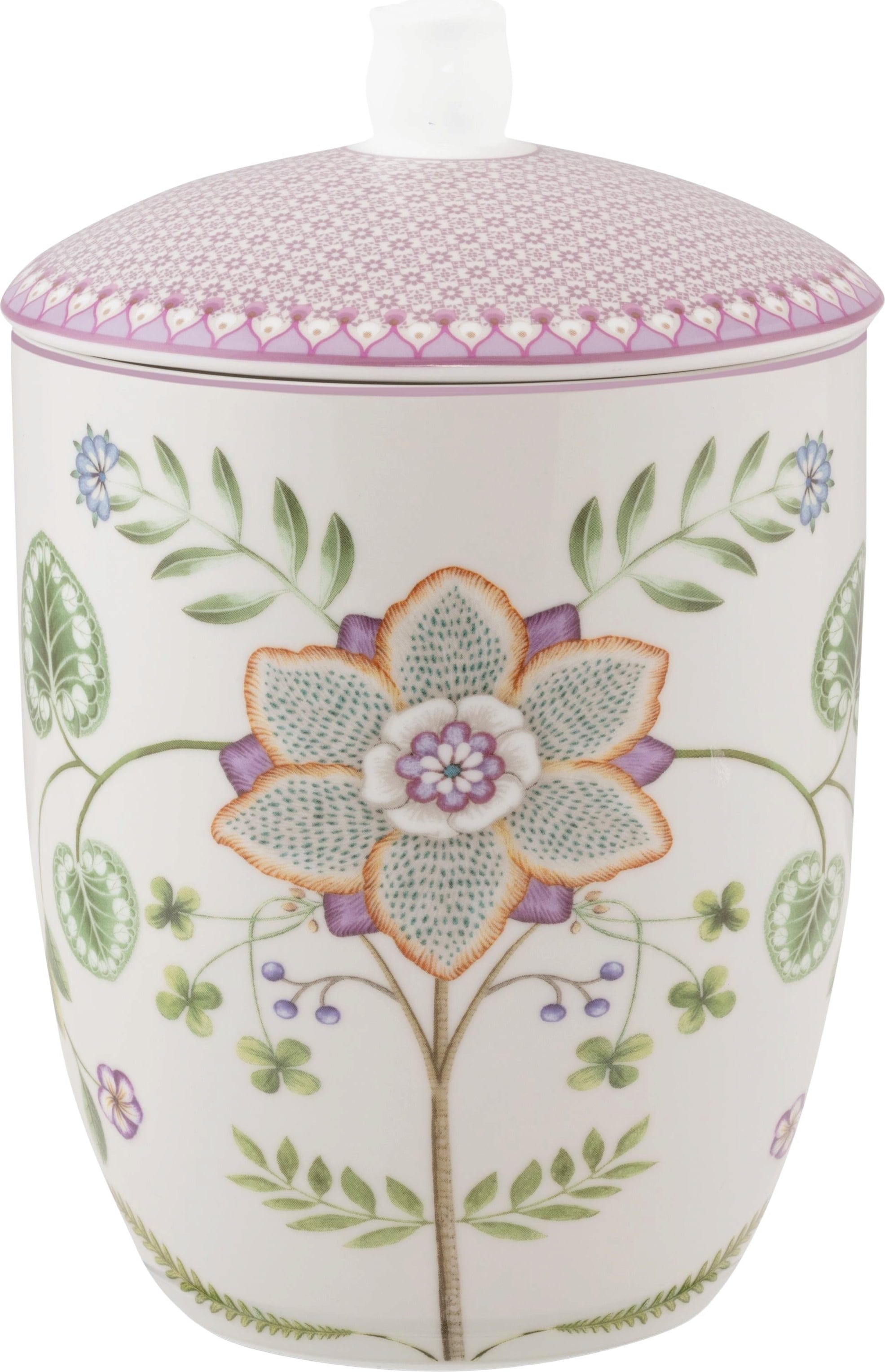 Przechowuj swoje zapasy w dobrym stylu dzięki temu pięknemu pojemnikowi z kolekcji Lily & Lotus marki Pip Studio! Pojemnik zdobi duża, fantazyjna lilia oraz pełne wdzięku pnącza w delikatnych, pastelowych odcieniach, które tworzą nowoczesny design. Dzięki pojemności 1,5 litra oferuje mnóstwo miejsca na kawę mieloną, herbatę lub ciastka.