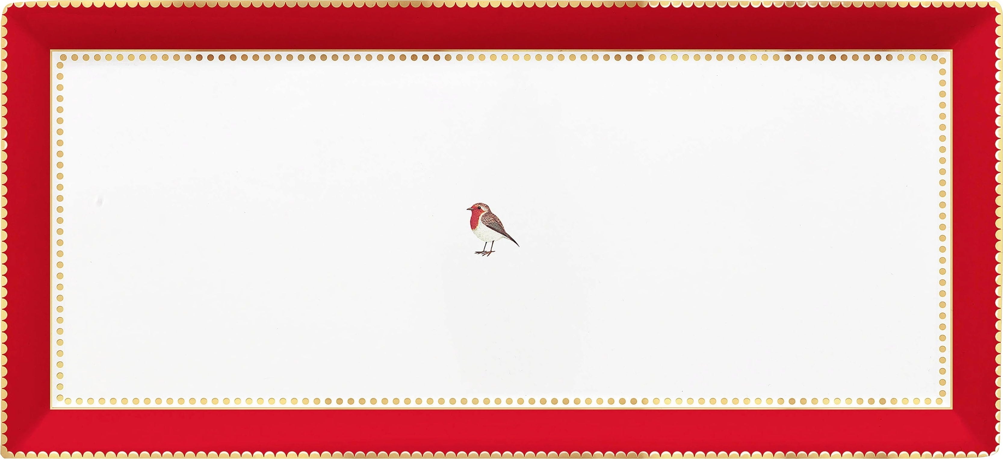 Pip Studio Prostokątny talerz do ciasta Love Birds 33,3 x 15,5 cm, czerwony