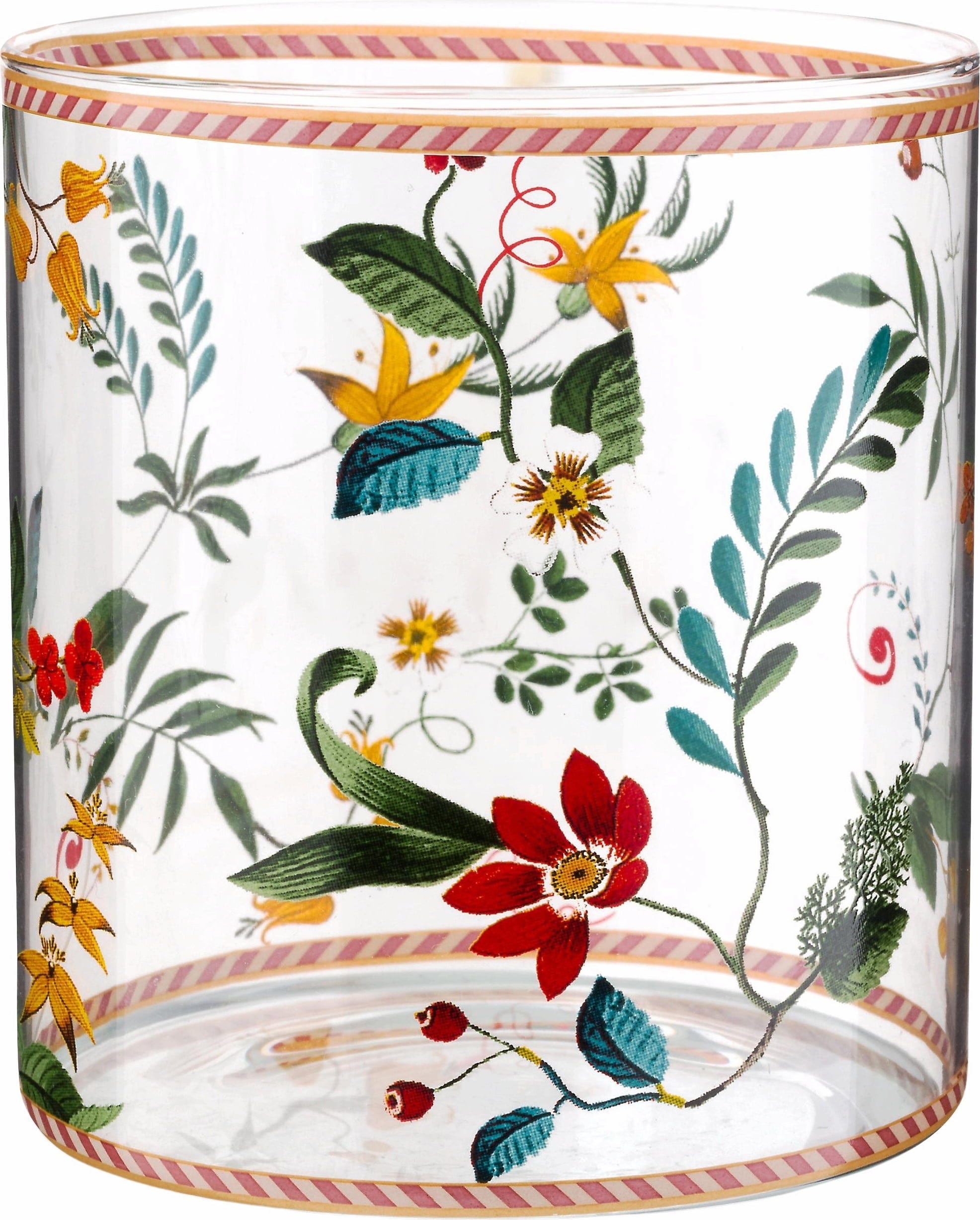 Ciesz się swoimi napojami w wielkim stylu dzięki tej uroczej szklance do wody z kolekcji Berry Blues od Pip Studio! Szklanka została wykonana z wysokiej jakości, ręcznie dmuchanego szkła kryształowego i ozdobiona kolorowym motywem kwiatowym oraz czerwono-białym paskiem na krawędzi. Cienkie, przezroczyste szkło idealnie eksponuje napoje i stanowi świeży, kolorowy akcent na każdym stole!