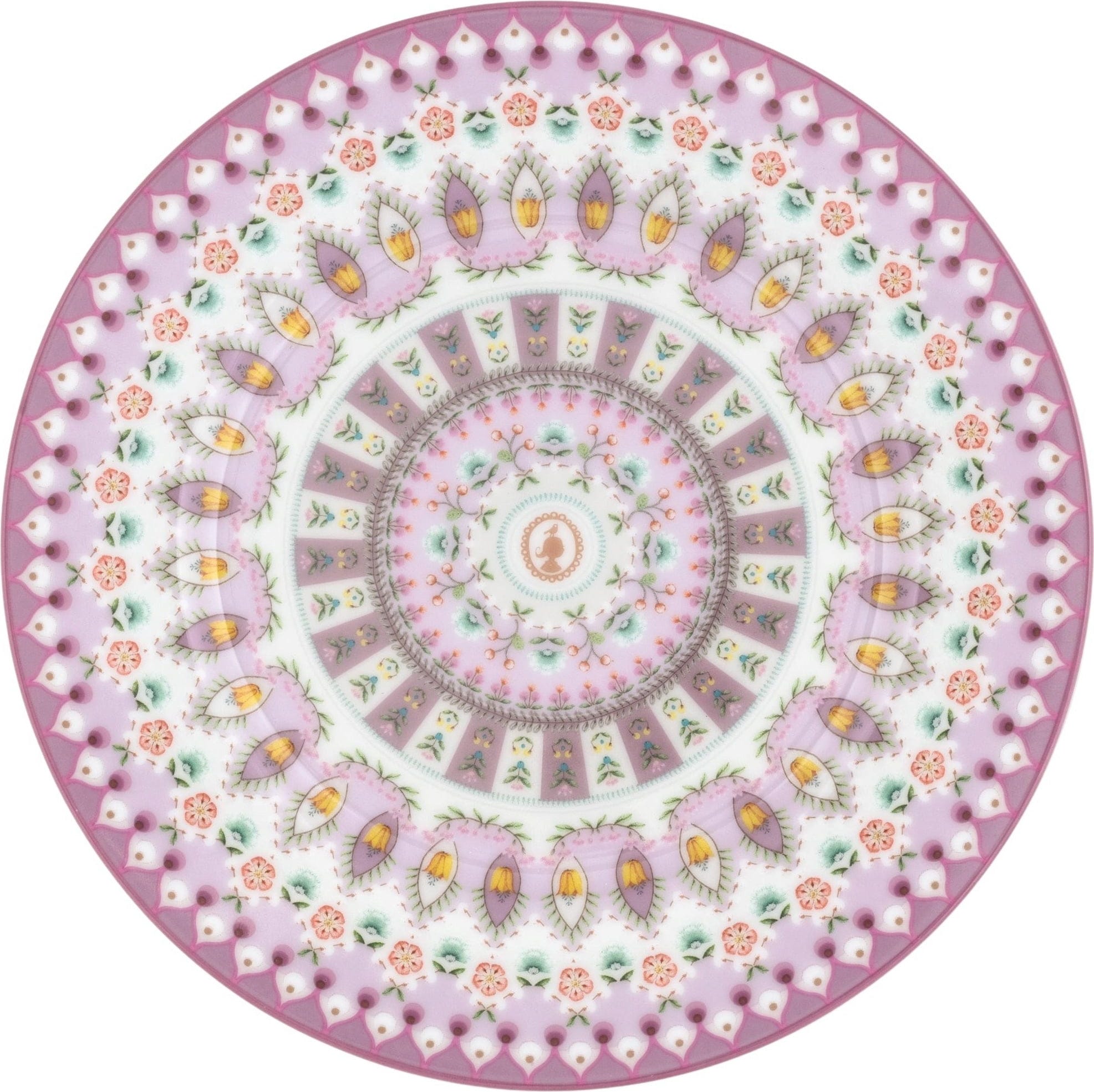 Zmień swój stół kawowy w galerię piękna dzięki temu wykwintnemu talerzowi do ciasta z kolekcji Lily-&-Lotus- marki Pip Studio! Jest on ozdobiony urzekającym, kalejdoskopowym nadrukiem, składającym się z niezliczonych drobnych kwiatów i liści w delikatnych pastelowych odcieniach. Złożony i symetryczny wzór tworzy fascynujący design przypominający mandalę, od którego nie można oderwać wzroku.