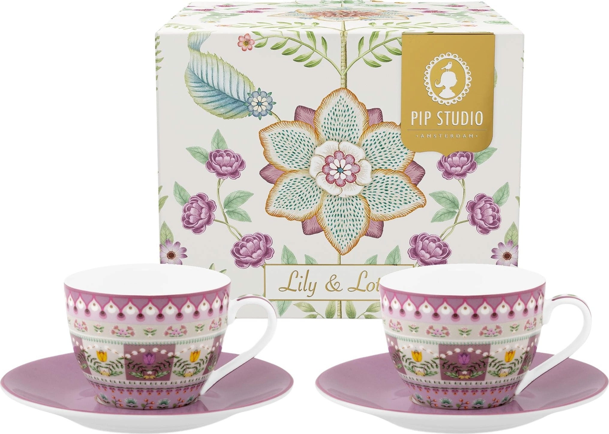 Pip Studio Zestaw 2 filiżanek do espresso i spodków Lily & Lotus, lila (120 ml)