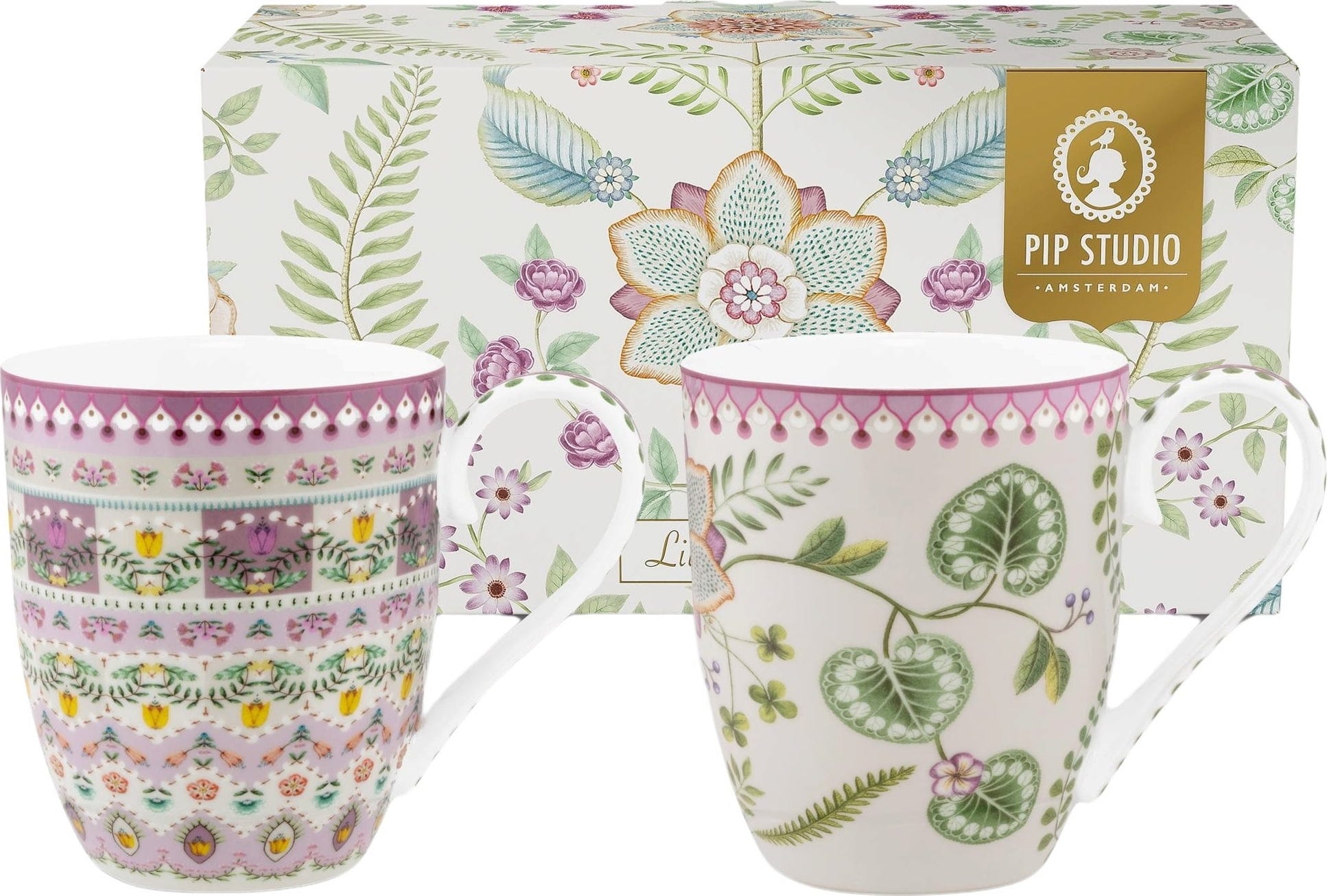 Ciesz się swoimi ulubionymi napojami w wielkim stylu dzięki temu pięknemu zestawowi dwóch bardzo dużych kubków z kolekcji Lily & Lotus marki Pip Studio! Kubki zdobią fantazyjne lilie, liście lotosu i dmuchawce w delikatnych pastelowych odcieniach, tworząc nowoczesny i pełen wdzięku design. Każdy kubek ma pojemność aż 450 ml, co czyni go idealnym do kawy lub herbaty!